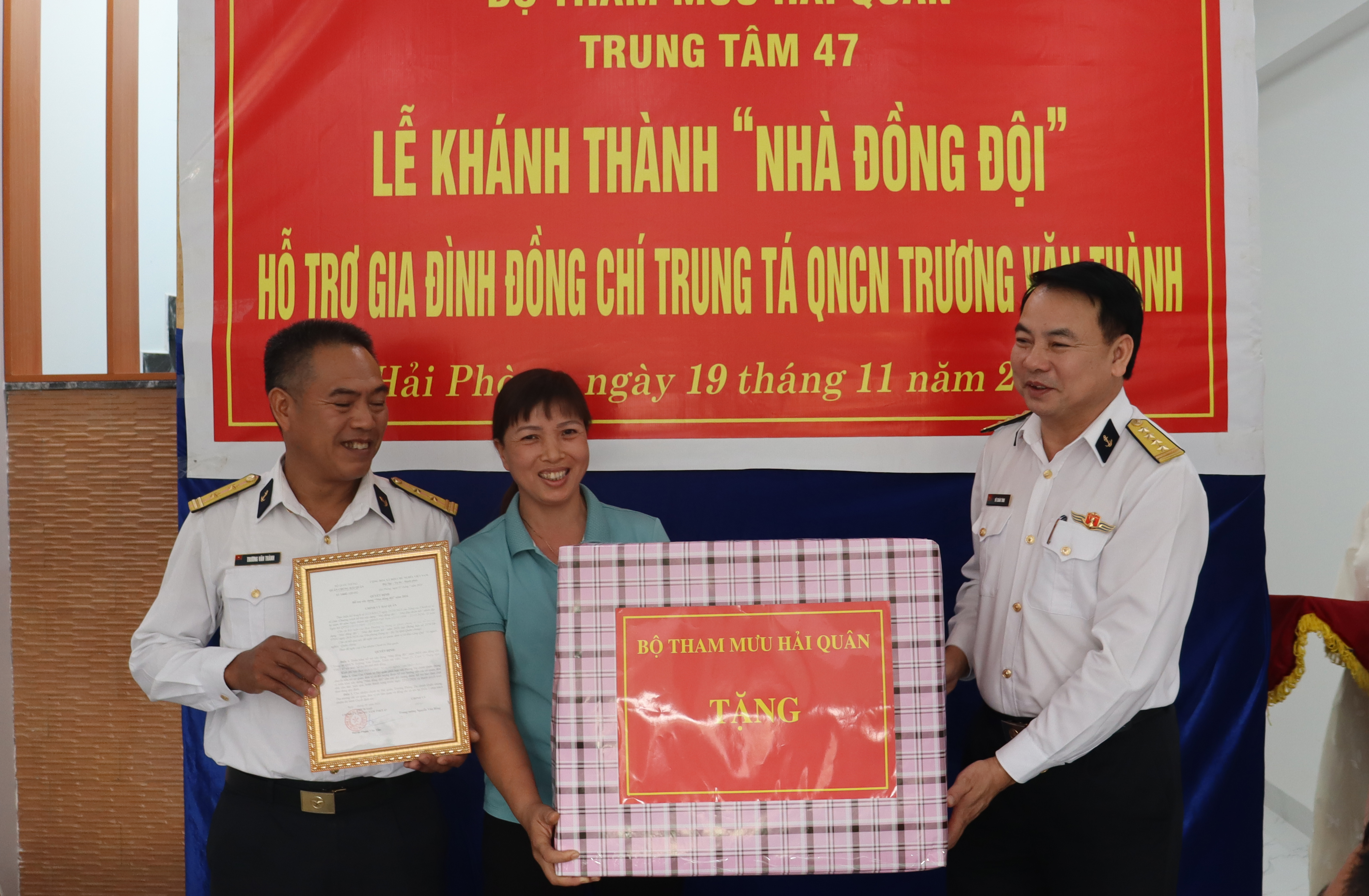 Chiều 19/11, tại phường Tràng Cát, quận Hải An, TP. Hải Phòng, Trung tâm 47, Bộ tham mưu Hải quân phối hợp với địa phương tổ chức khánh thành và bàn giao nhà đồng đội tặng gia đình Trung tá QNCN Trương Văn Thành, nhân viên Trạm 21, Cụm 1.