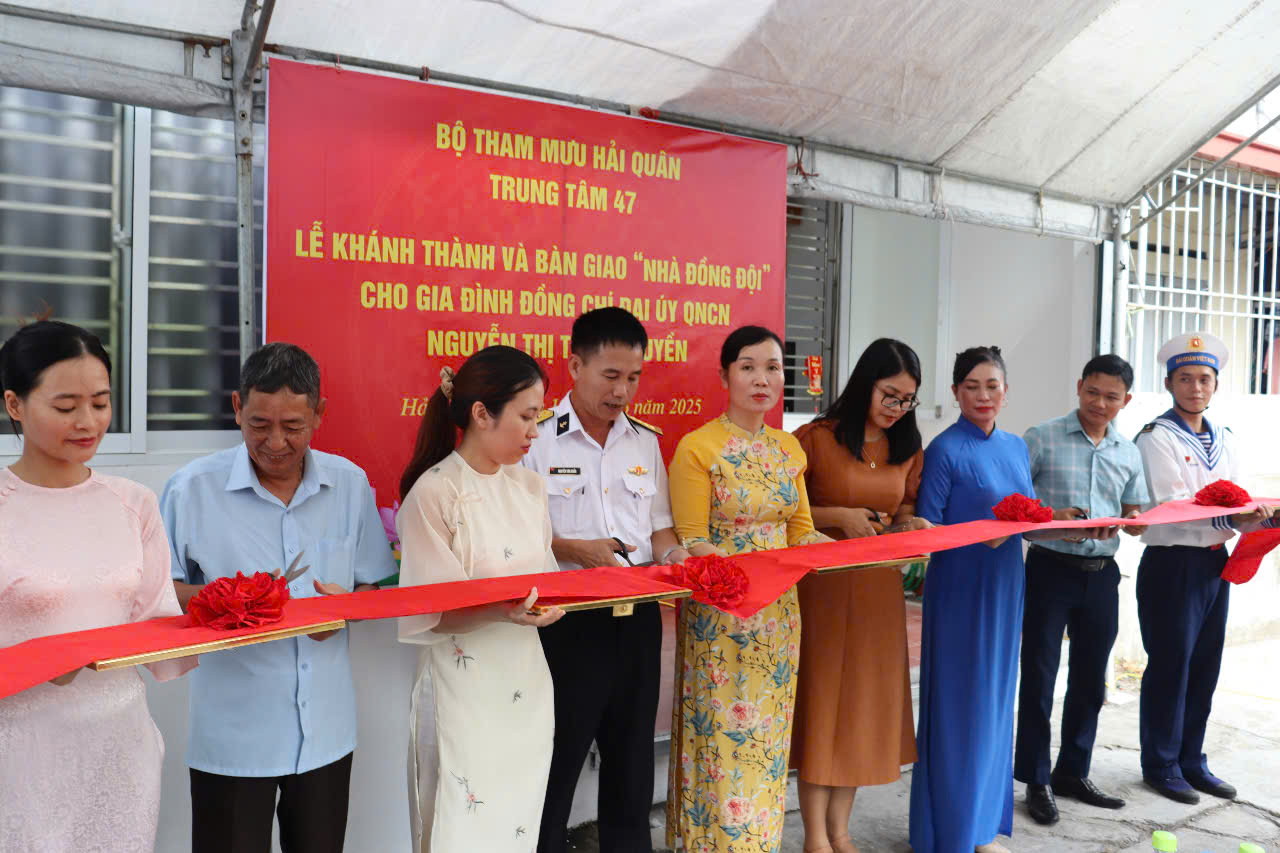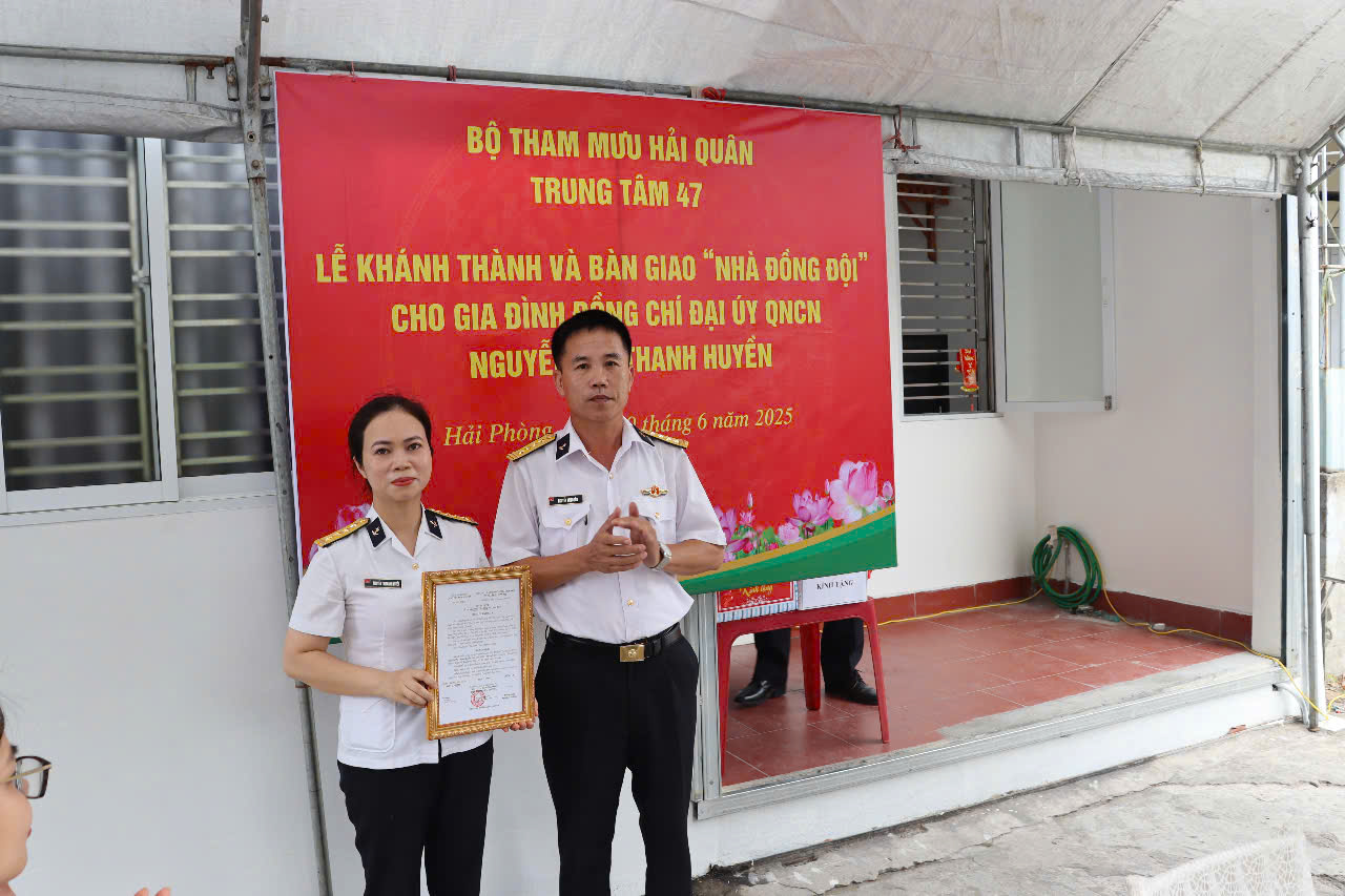 Chiều 19/6, tại phường Hưng Đạo, quận Dương Kinh, TP. Hải Phòng, Trung tâm 47 (Bộ Tham mưu Hải quân) phối hợp với địa phương tổ chức khánh thành và bàn giao nhà đồng đội tặng gia đình Đại úy QNCN Nguyễn Thị Thanh Huyền, nhân viên Trạm 15.