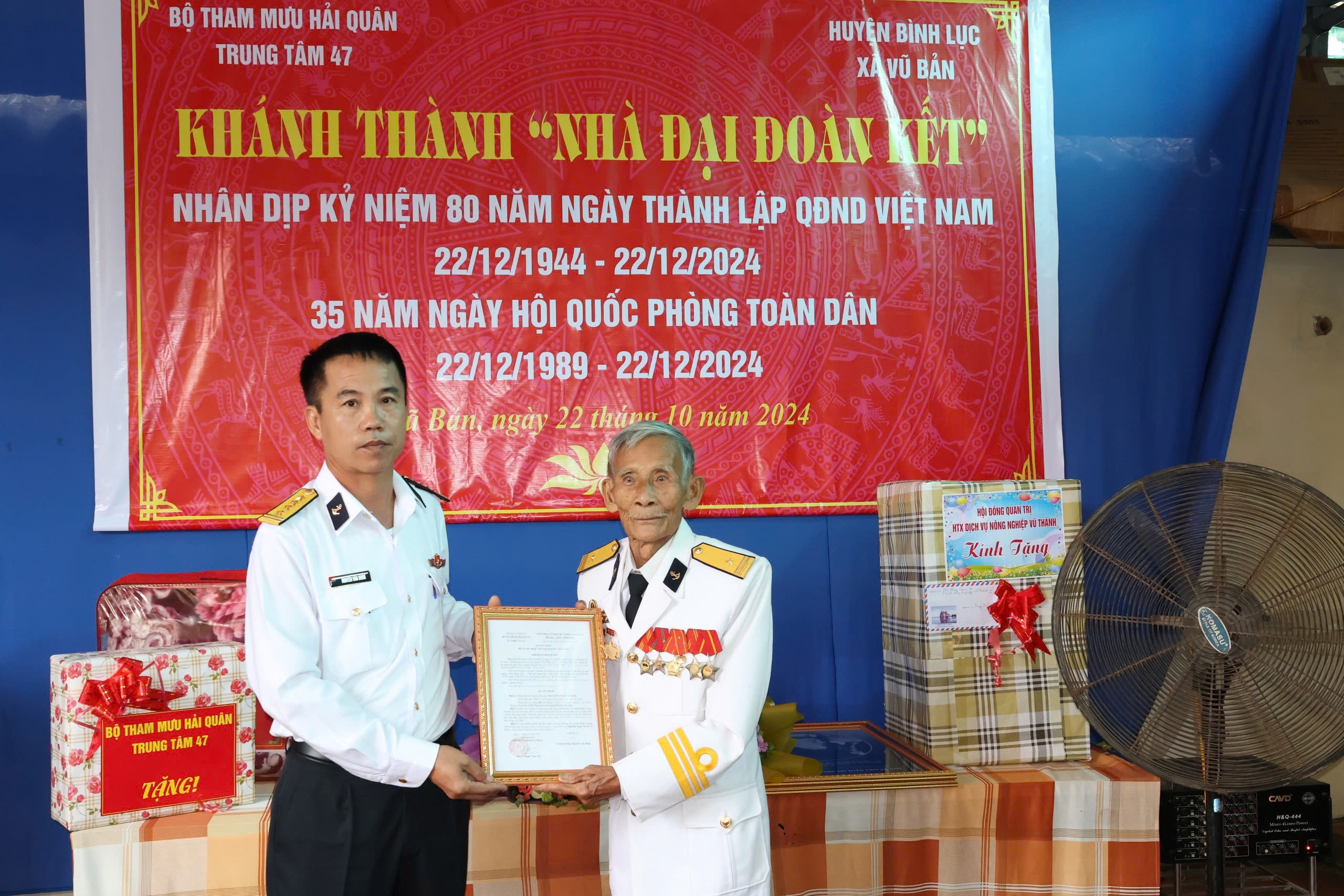 Ngày 22/10, tại xã Vũ Bản, huyện Bình Lục, tỉnh Hà Nam, Trung tâm 47, Bộ Tham mưu Hải quân tổ chức khánh thành và bàn giao nhà đại đoàn kết tặng gia đình ông Nguyễn Ngọc Xuyền, là cựu chiến binh Hải quân.
