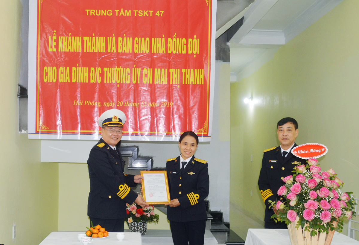 Sáng 20-12, tại phường Tràng Cát, quận Hải An, TP. Hải Phòng, Trung tâm 47, Bộ Tham mưu Hải quân tổ chức Lễ khánh thành và bàn giao nhà đồng đội cho gia đình Thượng úy QNCN Mai Thị Thanh, Nhân viên Thông tin, Phòng Tham mưu Trung tâm.