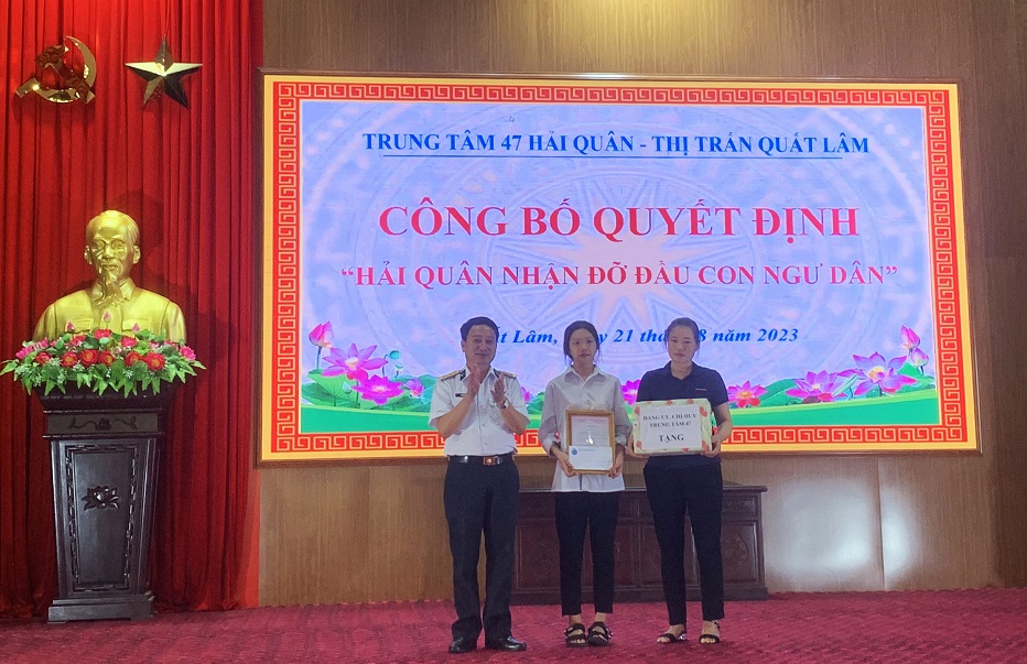 Ngày 21/8, tại UBND thị trấn Quất Lâm, huyện Giao Thủy, tỉnh Nam Định, Trung Tâm 47, Bộ Tham mưu Hải quân phối hợp với chính quyền địa phương tổ chức công bố quyết định “Hải quân nhận đỡ đầu con ngư dân” và trao kinh phí hỗ trợ Quý III, IV cho con ngư dân. Đại tá Phạm Văn Tần, Bí thư Đảng ủy, Chính ủy Trung tâm 47 chủ trì.