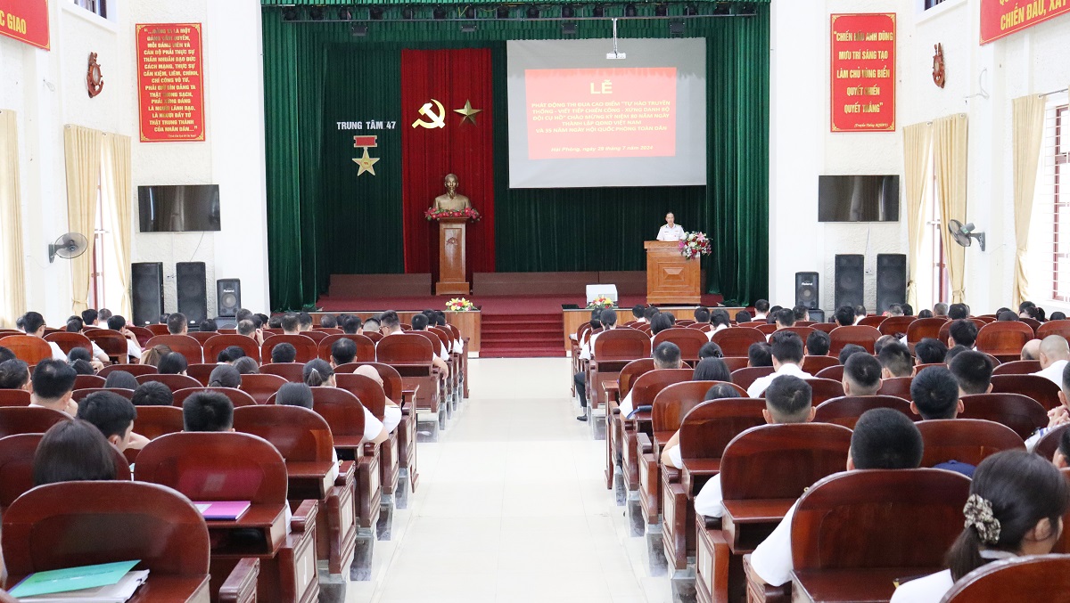 Sáng 29/7, tại Hải Phòng, Trung tâm 47, Bộ Tham mưu Hải quân tổ chức lễ phát động thi đua cao điểm với chủ đề “Tự hào truyền thống – Viết tiếp chiến công – Xứng danh Bộ đội Cụ Hồ” kỷ niệm 80 năm Ngày thành lập Quân đội nhân dân Việt Nam (22/12/1944 – 22/12/2024) và 35 năm Ngày hội Quốc phòng toàn dân (22/12/1989 – 22/12/2024).