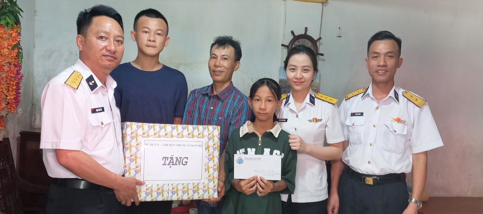 Chiều 31/5, nhân dịp tổng kết năm học 2022-2023 và Quốc tế thiếu nhi 1/6, tại phường Vạn Hương, quận Đồ Sơn, TP. Hải Phòng, Thượng tá Phạm Văn Tần, Bí thư Đảng ủy, Chính ủy Trung tâm 47, Bộ Tham mưu Hải quân cùng đoàn công tác đã đến thăm, tặng quà, động viên con ngư dân và trao tiền hỗ trợ.