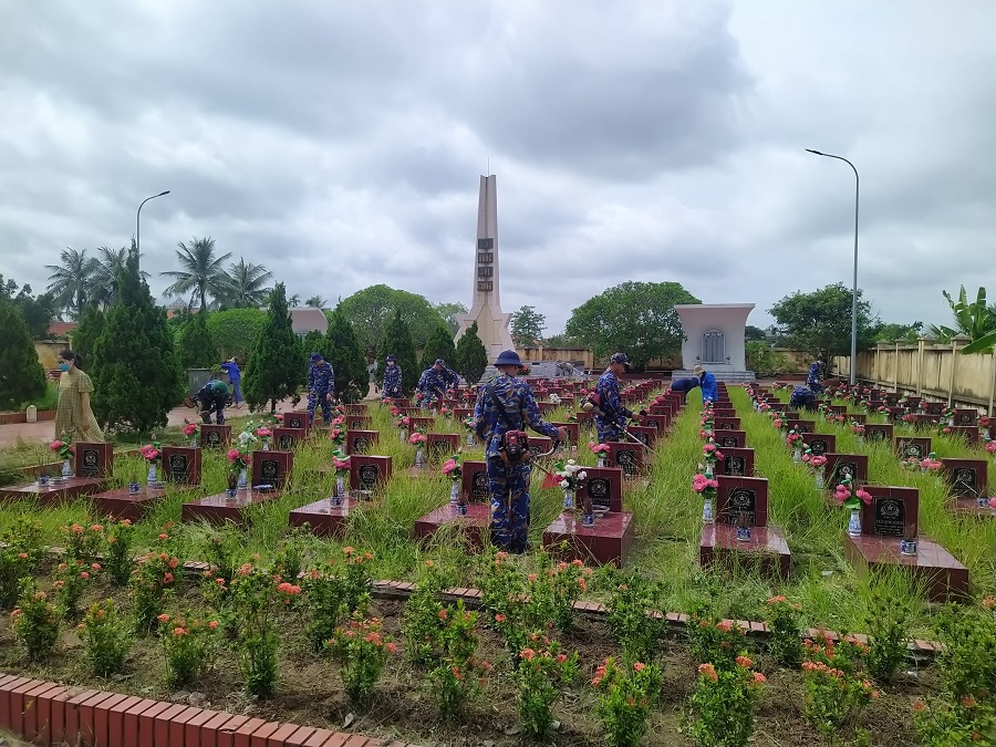Đoàn viên thanh niên lao động làm đẹp nghĩa trang liệt sĩ phường Hưng Đạo