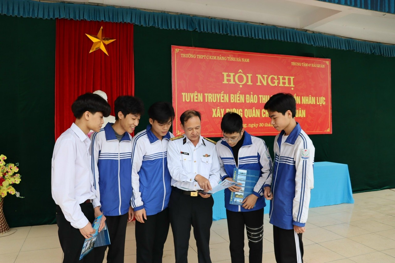 Ngày 20/3, tại tỉnh Hà Nam, Trung tâm 47, Bộ Tham mưu Hải quân phối hợp với Ban Tuyên giáo Tỉnh ủy, Sở Giáo dục và Đào tạo tỉnh Hà Nam tổ chức thông tin về tình hình biển, đảo và tuyên truyền thu hút nguồn nhân lực xây dựng Quân chủng Hải quân trong tình hình mới cho hơn 2.200 cán bộ, giáo viên, học sinh Trường THPT B Duy Tiên và Trường THPT C Kim Bảng, tỉnh Hà Nam.