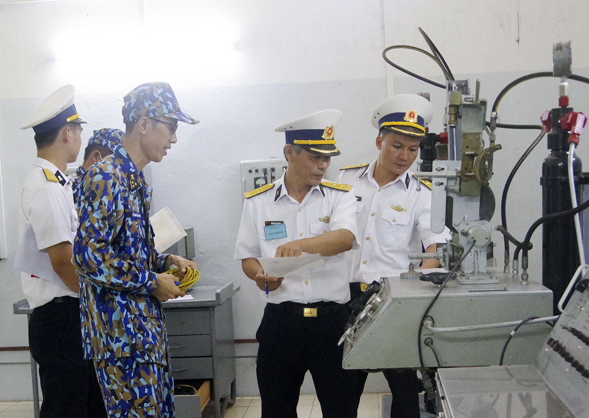 Ban giám khảo chấm thi phần thao tác trên máy kiểm tra ngư lôi
