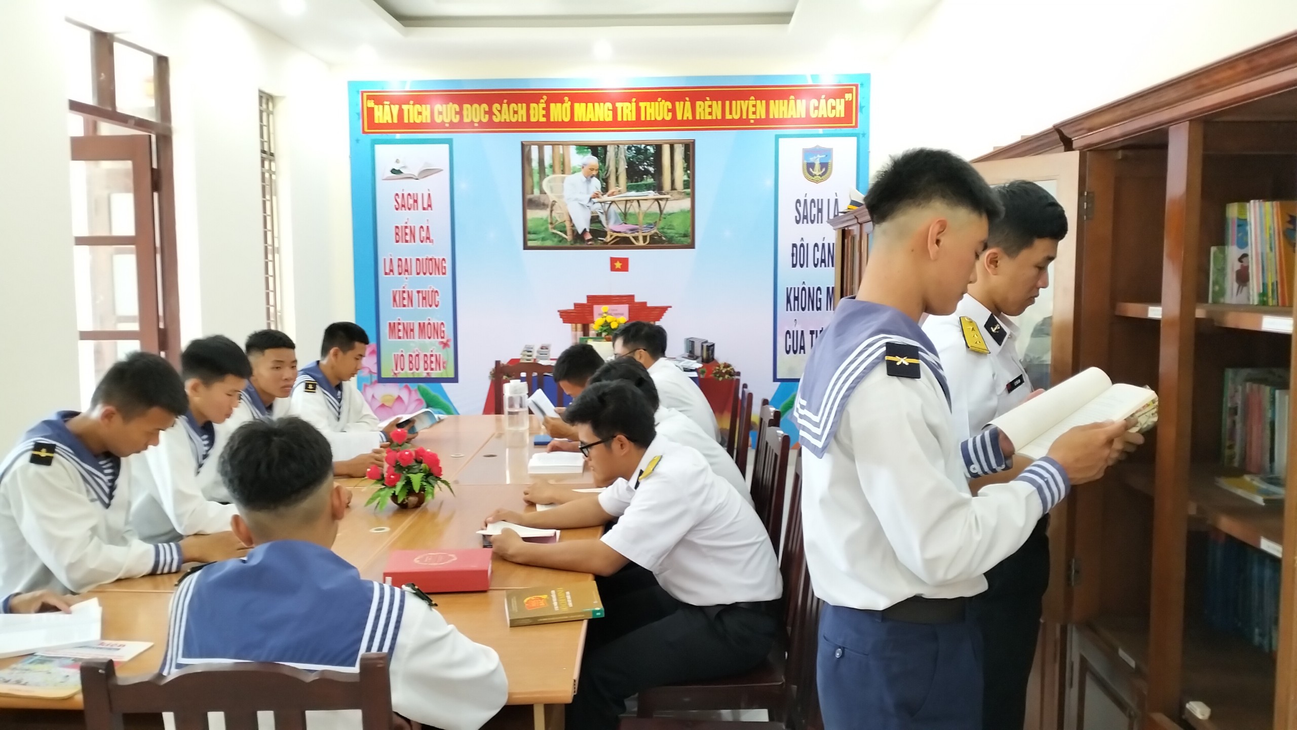 Thư viện và phòng Hồ Chí Minh của đơn vị đã trưng bày trên 1.000 đầu sách về sự nghiệp cách mạng của Đảng, Bác Hồ; chủ đề giải phóng miền Nam thống nhất đất nước (30/4/1975); Chiến thắng lịch sử Điện Biên Phủ (7/5/1954); các đầu sách về thành tựu đổi mới đất nước dưới sự lãnh đạo của Đảng Cộng sản Việt Nam; biển, đảo Tổ quốc; lịch sử, truyền thống vẻ vang của Quân đội, Quân chủng Hải quân Nhân dân Việt Nam anh hùng và truyền thống Vùng 4 Hải quân.
