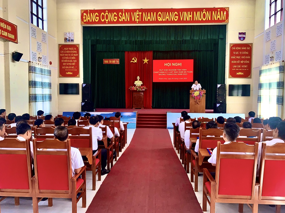 Chiều 8/3, tại TP. Cam Ranh, tỉnh Khánh Hòa, Trung tâm Bảo đảm kỹ thuật 719, Vùng 4 Hải quân tổ chức Hội nghị rút kinh nghiệm tình hình chấp hành kỷ luật, bảo đảm an toàn những tháng đầu năm 2023. Thượng tá Hoàng Trần Lương, Phó Chỉ huy trưởng Trung tâm chủ trì.