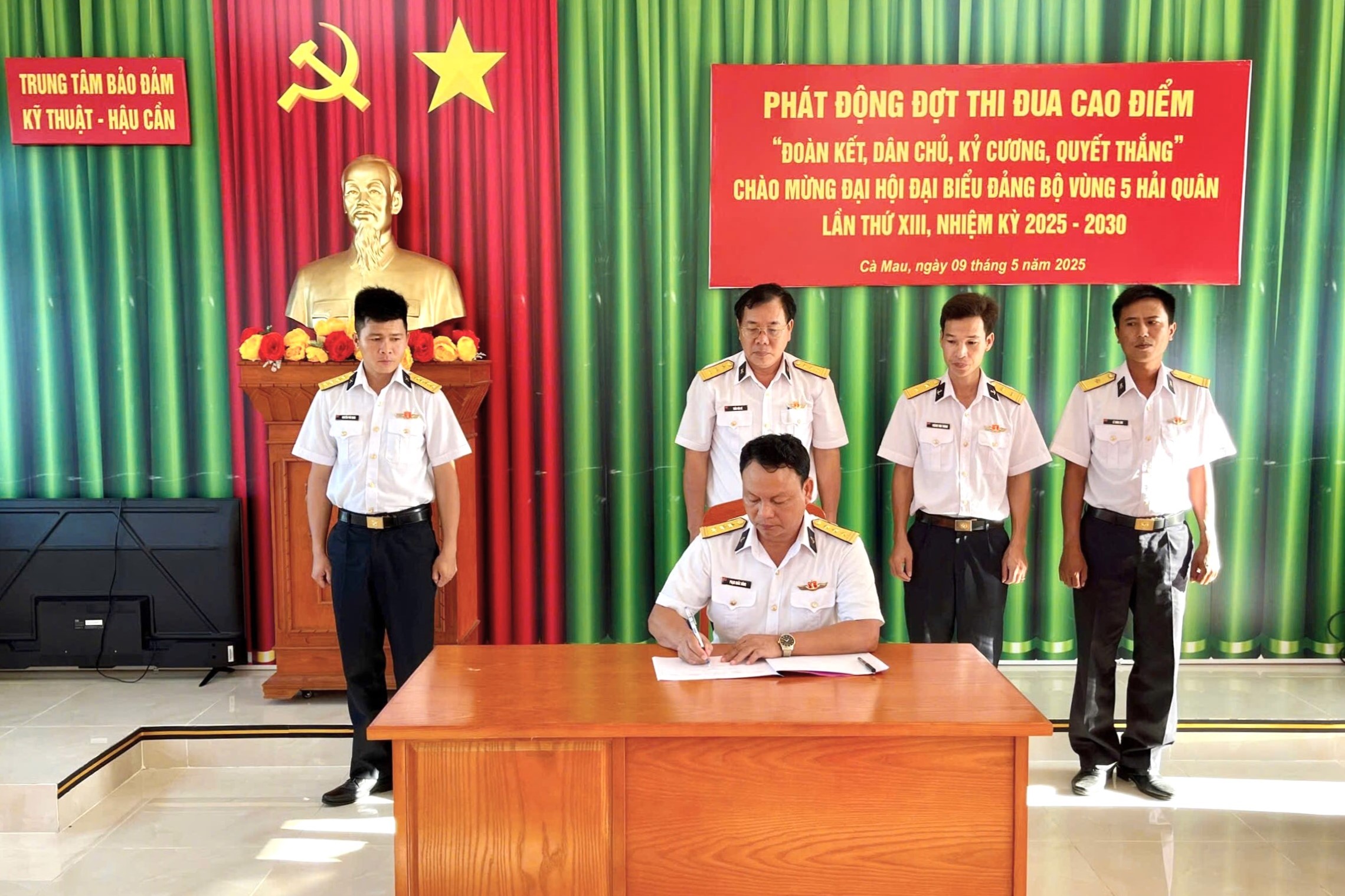 Sáng 9/5, tại huyện Năm Căn, tỉnh Cà Mau, Trung tâm Bảo đảm kỹ thuật - hậu cần, Bộ Tư lệnh Vùng 5 Hải quân, tổ chức phát động đợt thi đua cao điểm với chủ đề “Đoàn kết, dân chủ, kỷ cương, quyết thắng” chào mừng Đại hội đại biểu Đảng bộ Vùng 5 Hải quân lần thứ XIII, nhiệm kỳ 2025 - 2030. Thượng tá Phạm Khắc Đông, Bí thư Đảng ủy, Chính ủy Trung tâm chủ trì.