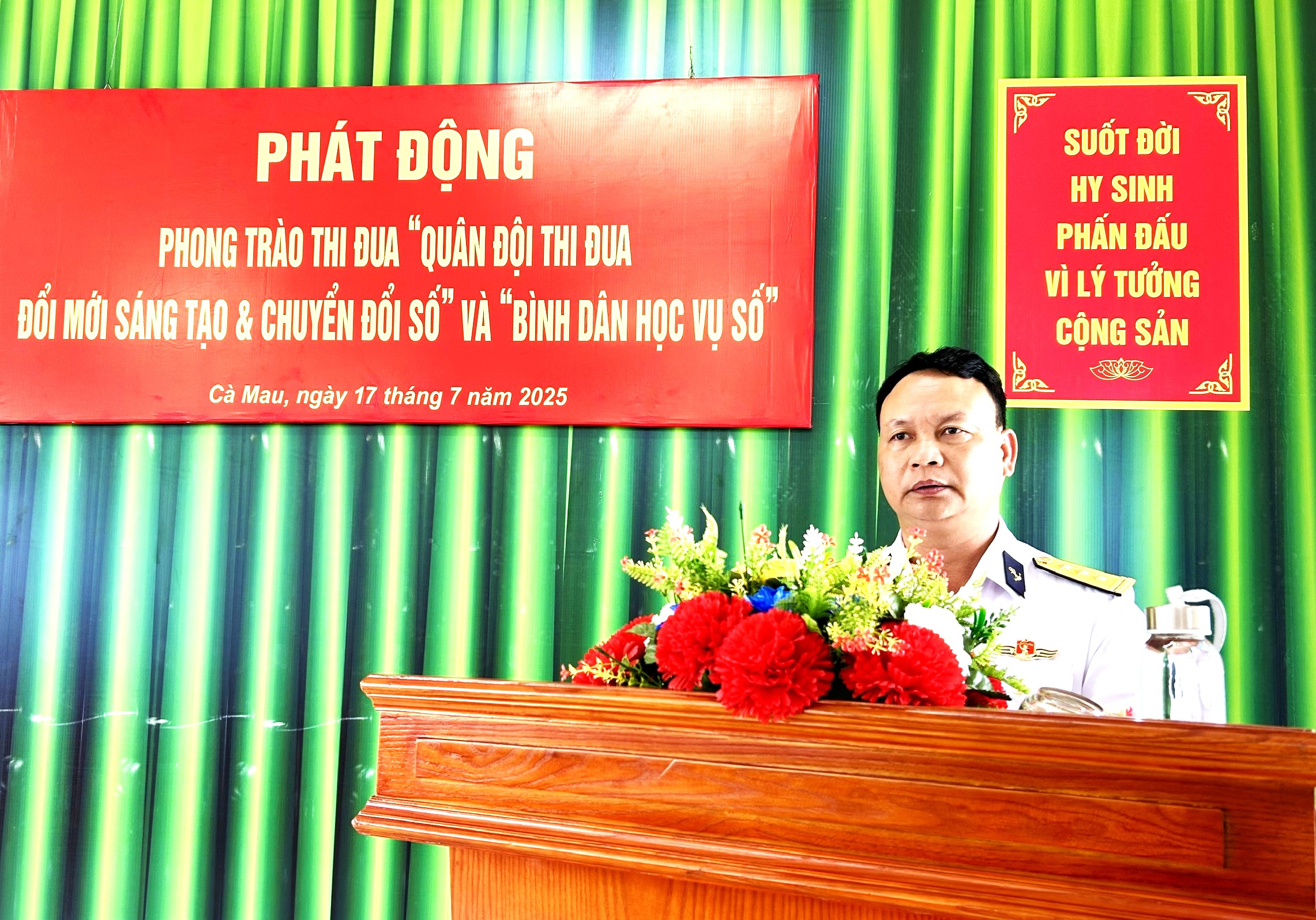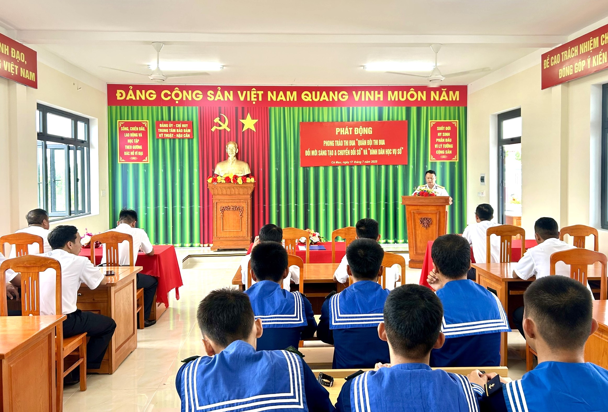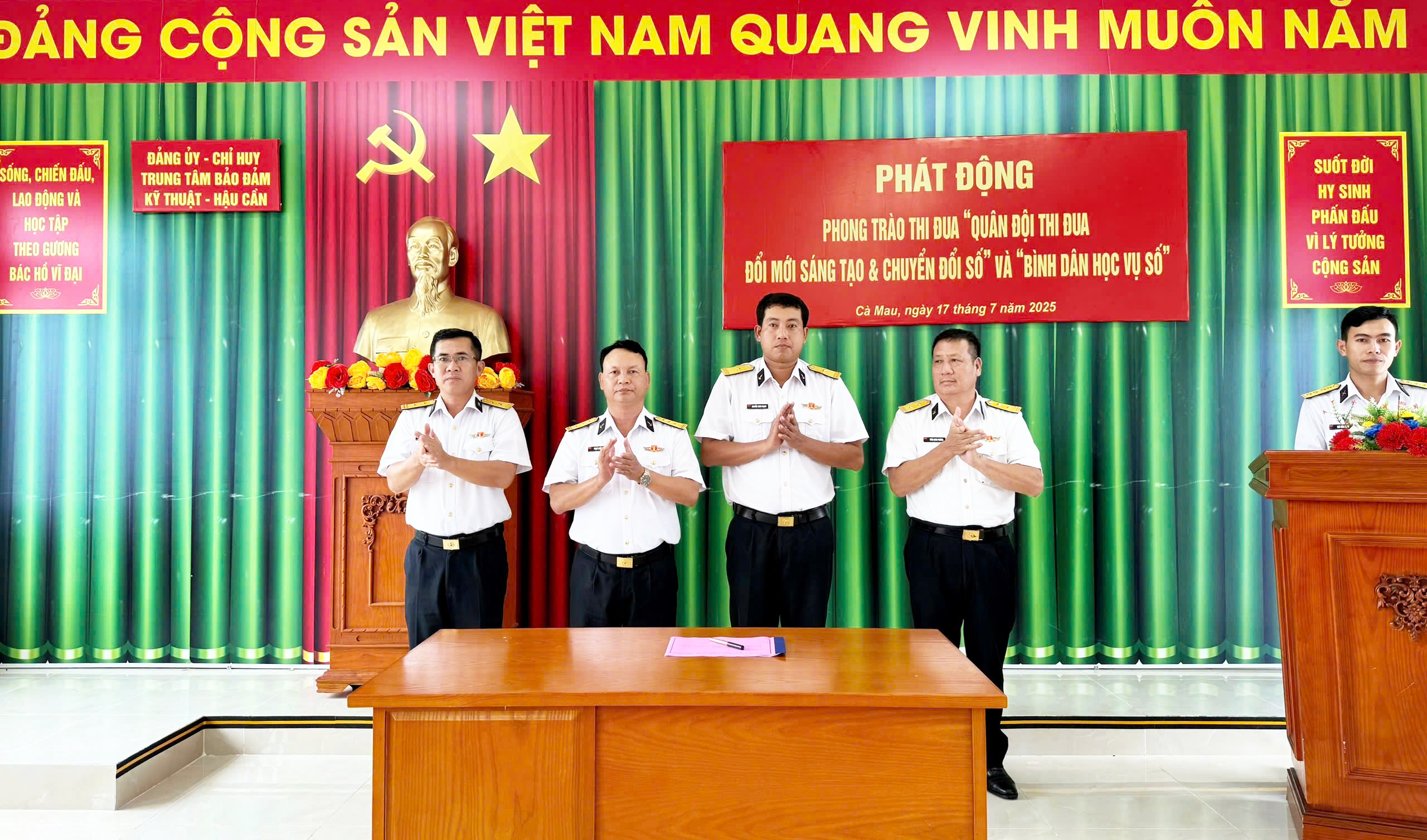 Chiều 17/7, tại xã Năm Căn, tỉnh Cà Mau, Trung tâm Bảo đảm Kỹ thuật - Hậu cần, Bộ Tư lệnh Vùng 5 Hải quân tổ chức phát động phong trào thi đua “Quân đội thi đua đổi mới sáng tạo và chuyển đổi số” và “Bình dân học vụ số”. Thượng tá Phạm Khắc Đông, Bí thư Đảng ủy, Chính ủy Trung tâm chủ trì.