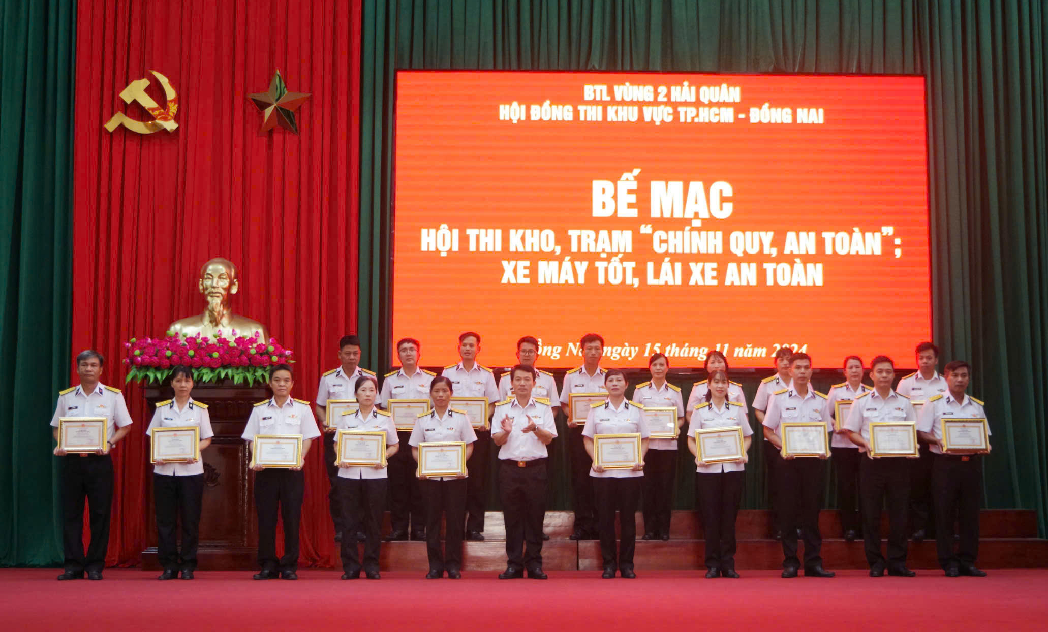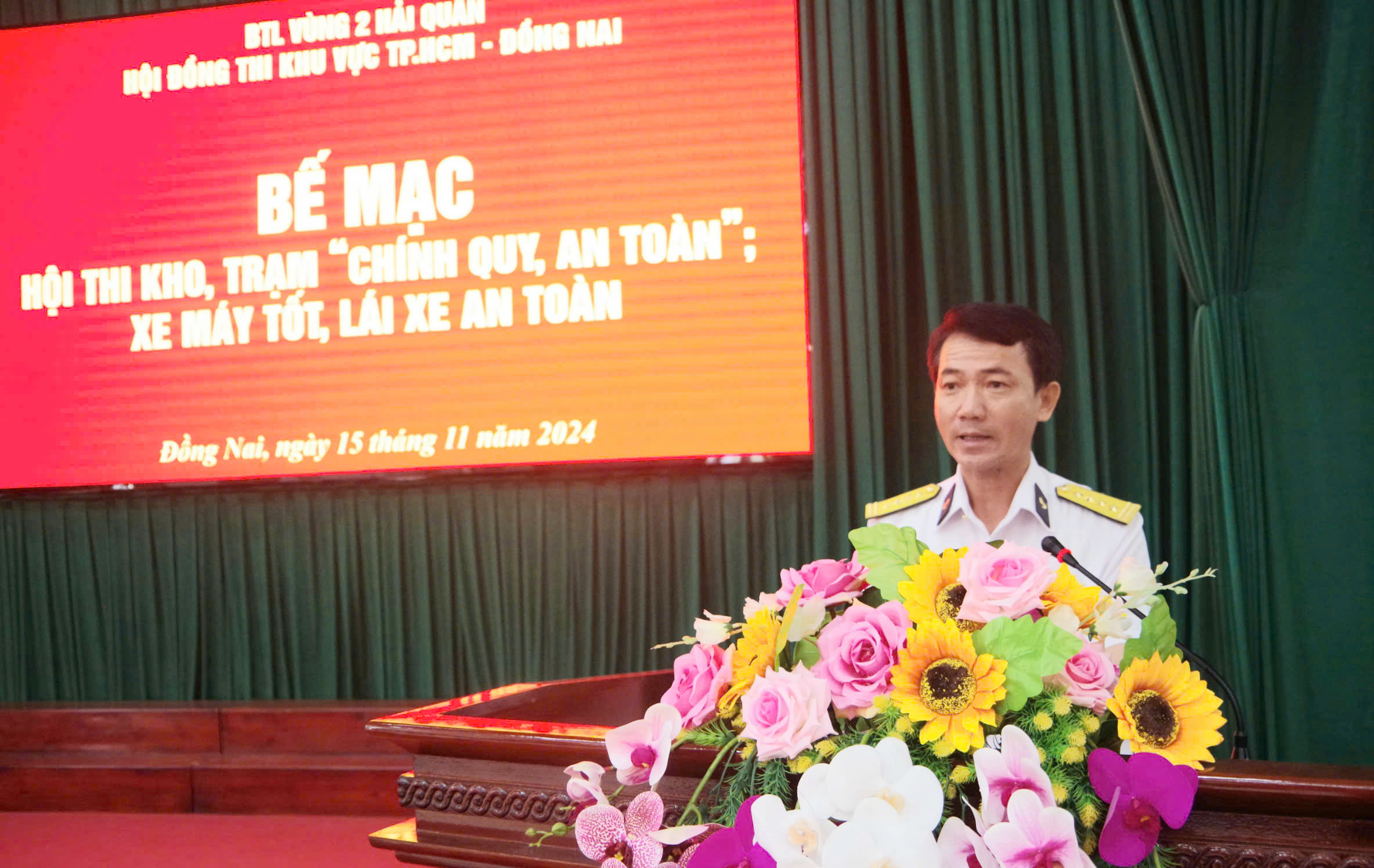 Chiều 15/11, tại tỉnh Đồng Nai, Trung tâm Bảo đảm kỹ thuật (BĐKT) Vùng 2 Hải quân tổ chức bế mạc Hội thi kho, trạm chính quy an toàn, xe - máy tốt, lái xe an toàn; tàu - xuồng chính quy, mẫu mực; “Bàn tay vàng” và 4 chuyên ngành hậu cần. Dự và chỉ đạo bế mạc có Đại tá Nguyễn Thanh Hà, Chỉ huy trưởng Trung tâm.