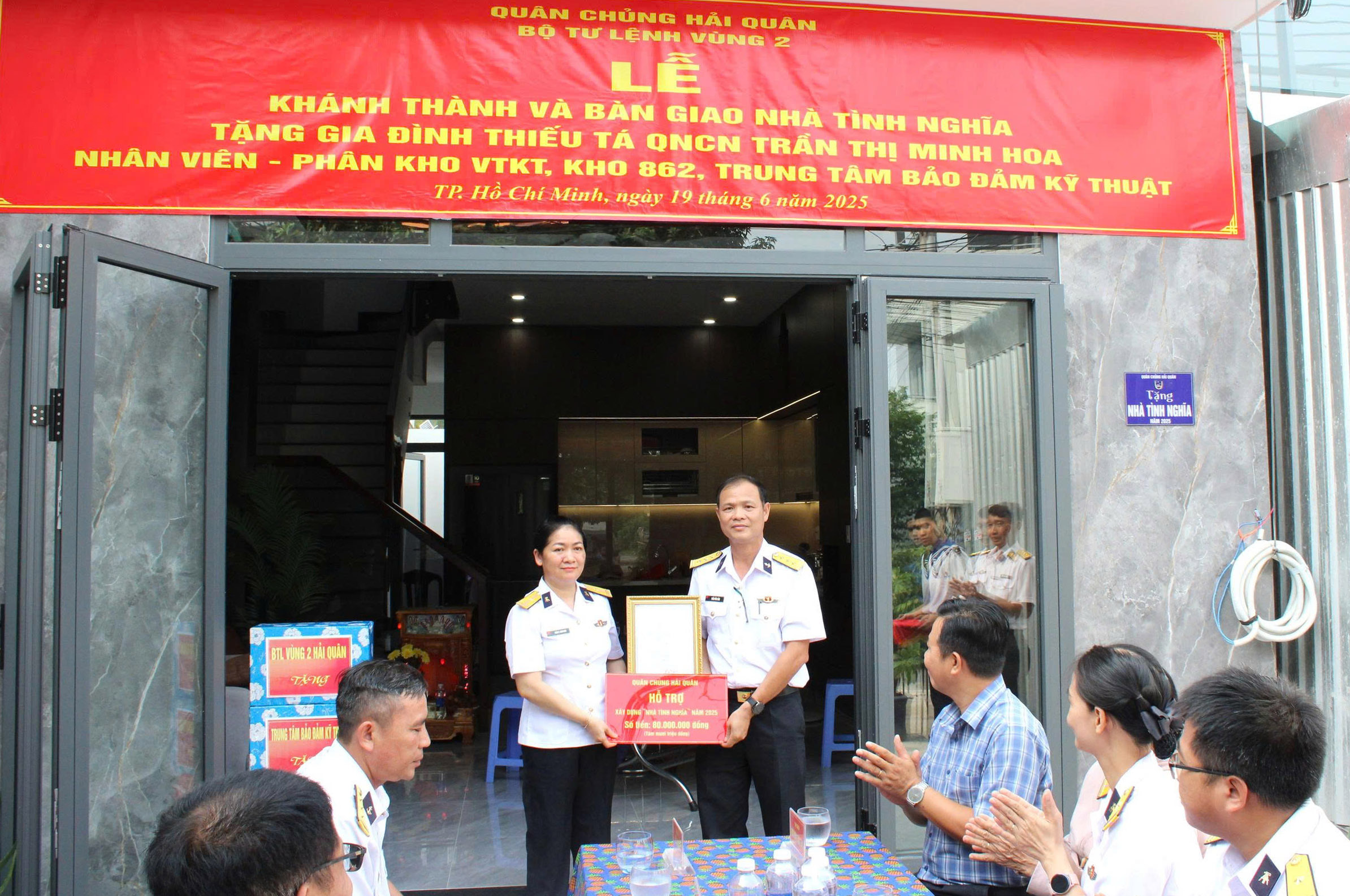 Ngày 19/6 tại phường Trường Thạnh, TP. Thủ Đức (TP. Hồ Chí Minh) Trung tâm Bảo đảm kỹ thuật, Vùng 2 Hải quân phối hợp với cấp uỷ, chính quyền địa phương tổ chức Lễ khánh thành và bàn giao nhà tình nghĩa tặng gia đình Thiếu tá QNCN Trần Thị Minh Hoa, Nhân viên Phân kho vật tư kỹ thuật, Kho 862 thuộc Trung tâm.