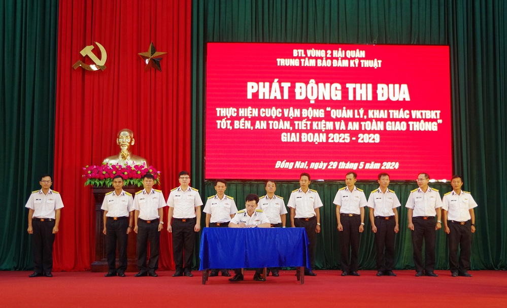 Ngày 29/5, tại huyện Nhơn Trạch, tỉnh Đồng Nai, Trung tâm Bảo đảm kỹ thuật, Vùng 2 Hải quân tổ chức Hội nghị sơ kết 5 năm thực hiện Cuộc vận động “Quản lý, khai thác vũ khí, trang bị kỹ thuật tốt, bền, an toàn, tiết kiệm và an toàn giao thông” (Cuộc vận động 50) giai đoạn 2020-2024. Đại tá Đinh Quang Uy, Chủ nhiệm Hậu cần – Kỹ thuật Vùng dự và chỉ đạo.