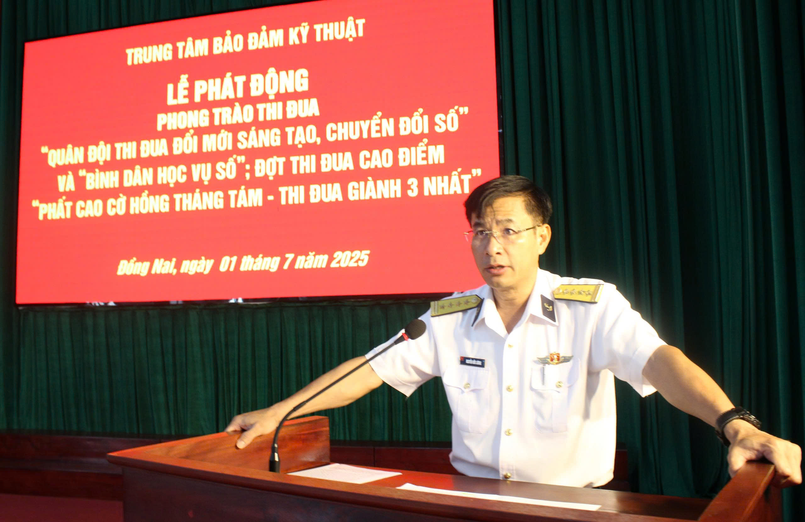 Ngày 1/7, tại Đồng Nai, Trung tâm Bảo đảm kỹ thuật (BĐKT) Vùng 2 Hải quân tổ chức phát động phong trào thi đua “Quân đội thi đua đổi mới sáng tạo, chuyển đổi số” và “Bình dân học vụ số”; đợt thi đua cao điểm “Phất cao cờ hồng tháng Tám – Thi đua giàng 3 nhất”. Đại tá Nguyễn Hữu Lương, Bí thư Đảng uỷ, Chính uỷ, Chủ tịch Hội đồng thi đua-khen thưởng Trung tâm chủ trì.