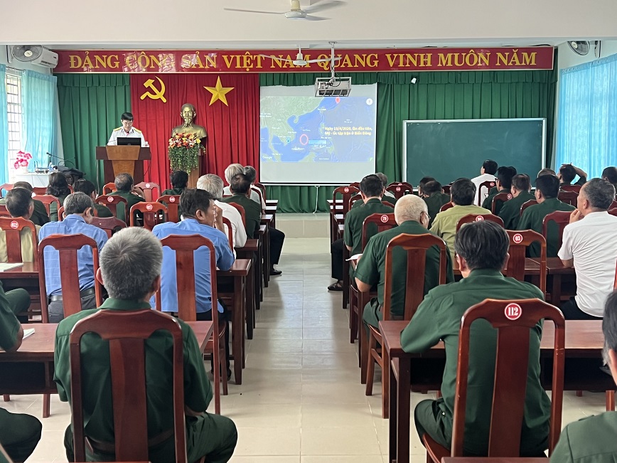 Chiều 28/6, tại huyện Nhơn Trạch, tỉnh Đồng Nai, Trung tâm Bảo đảm kỹ thuật Vùng 2 Hải quân phối hợp với Ban chấp hành Hội Cựu chiến binh huyện Nhơn Trạch tổ chức thông tin về tình hình biển, đảo cho 150 cán bộ, hội viên cựu chiến binh.