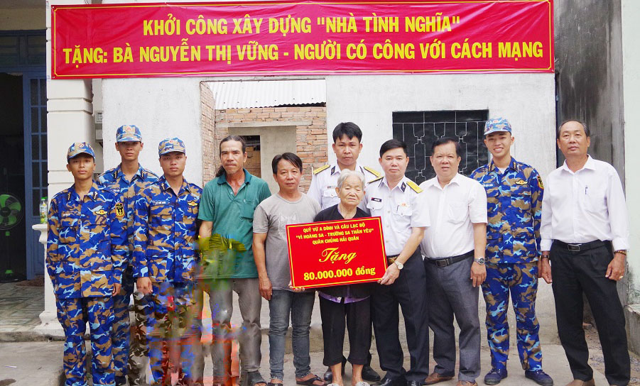 Sáng 8/5, tại ấp 3, xã Phú Thạnh, huyện Nhơn Trạch, tỉnh Đồng Nai, Trung tâm Bảo đảm kỹ thuật Vùng 2 Hải quân phối hợp với cấp ủy, chính quyền, đoàn thể địa phương tổ chức khởi công xây dựng "Nhà tình nghĩa" tặng bà Nguyễn Thị Vững.