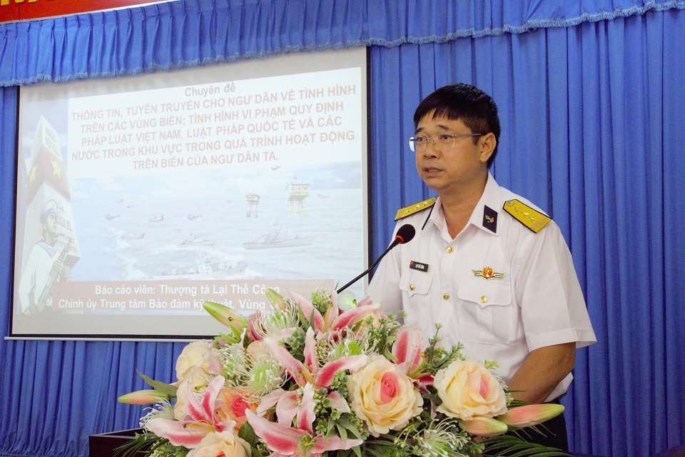 Tại hội nghị, Thượng tá Lại Thế Công, Chính ủy Trung tâm đã thông tin đến nhân dân trên địa bàn, nhất là chủ tàu cá và ngư dân về tình hình Biển Đông và khu vực biển phía Nam; những vấn đề liên quan đến hoạt động trên biển; một số lưu ý đối với ngư dân khi khai thác hải sản trên biển...