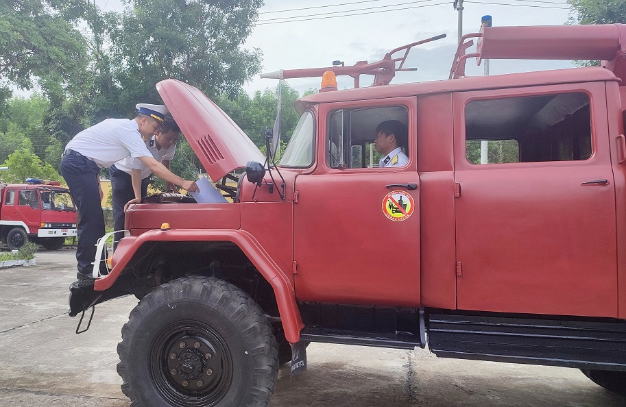 Ban Giám khảo kiểm tra công tác bảo quản xe ô tô