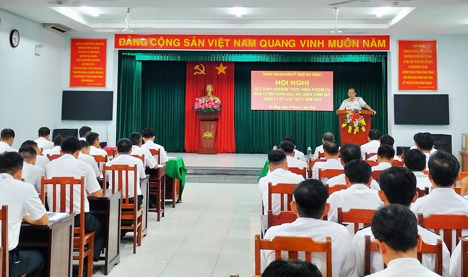 Chiều 29/3, tại TP. Đà Nẵng, Trung tâm Bảo đảm Kỹ thuật Vùng 3 Hải quân tổ chức Hội nghị rút kinh nghiệm thực hiện nhiệm vụ huấn luyện tháng đầu và xây dựng chính quy, quản lý kỷ luật (XDCQ, QLKL) Quý I năm 2024. Đại tá Nguyễn Văn Hoàn, Chỉ huy trưởng Trung tâm chủ trì.