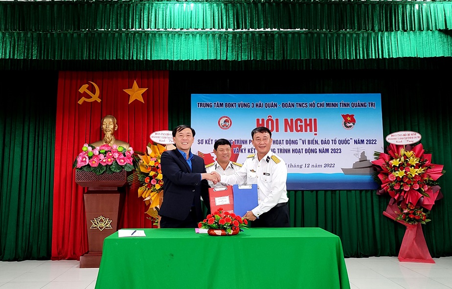 Ngày 17/12, tại Đà Nẵng, Trung tâm Bảo đảm kỹ thuật Vùng 3 Hải quân phối hợp với Tỉnh đoàn Quảng Trị tổ chức Hội nghị sơ kết chương trình phối hợp hoạt động “Vì biển, đảo Tổ quốc” năm 2022. Đại tá Vũ Thái Hà, Phó Chủ nhiệm Chính trị Vùng dự và chỉ đạo; Thượng tá Nguyễn Văn Long, Chính ủy Trung tâm bảo đảm kỹ thuật chủ trì.
