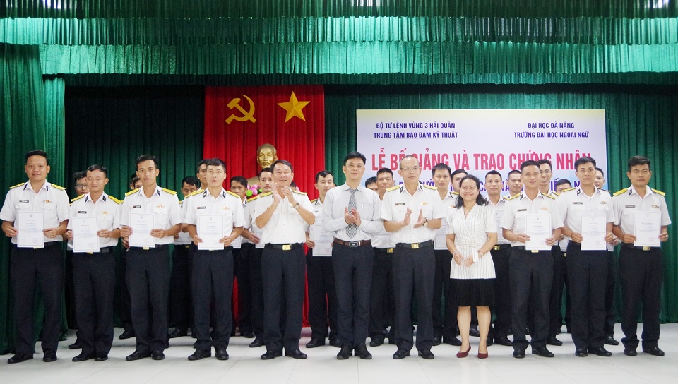 Chiều 19/7, tại Đà Nẵng, Trung tâm Bảo đảm Kỹ thuật Vùng 3 Hải quân phối hợp với Trường Đại học Ngoại ngữ, Đại học Đà Nẵng tổ chức Lễ bế giảng và trao chứng nhận khoá bồi dưỡng nâng cao năng lực tiếng Nga trình độ A2 cho sĩ quan.