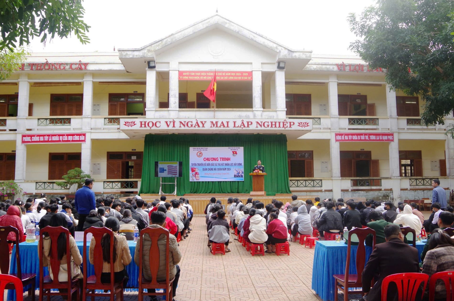 Quang cảnh buổi thông tin về biển đảo và tuyên truyền thu hút nguồn nhân lực tại trường THPT huyện Hướng Hoá