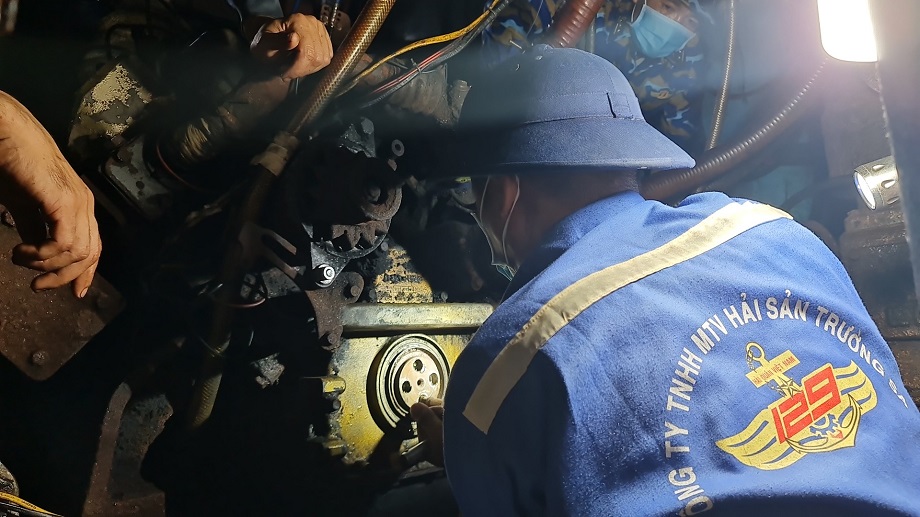 Sau gần 4 ngày tích cực, khẩn trương, nhân viên kỹ thuật của Trung tâm Dịch vụ hậu cần - kỹ thuật đảo Sinh Tồn khắc phục thành công sự cố bánh đà máy chính cho tàu cá QNg 96509 TS. Sau lắp đặt, thử tải, tàu cá hoạt động bình thường. Sau đó tàu cá tiếp tục đi khai thác hải sản.