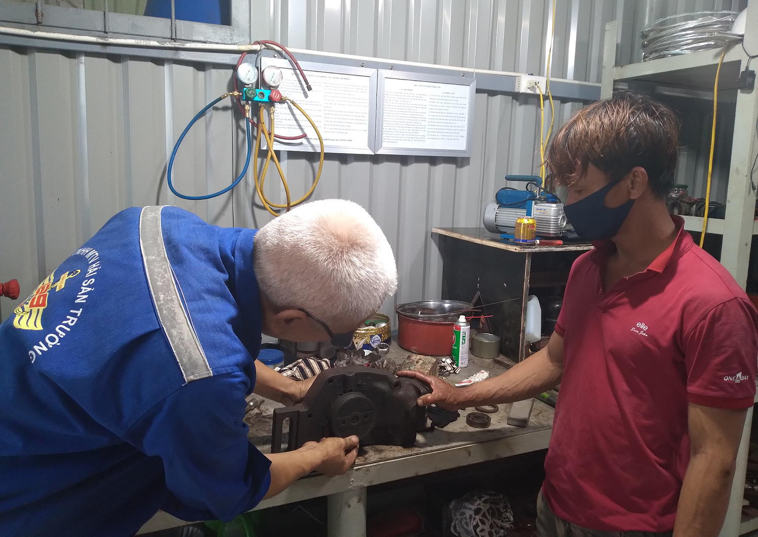 Cán bộ, nhân viên Trung tâm sửa bơm nước ngọt máy chính cho tàu cá