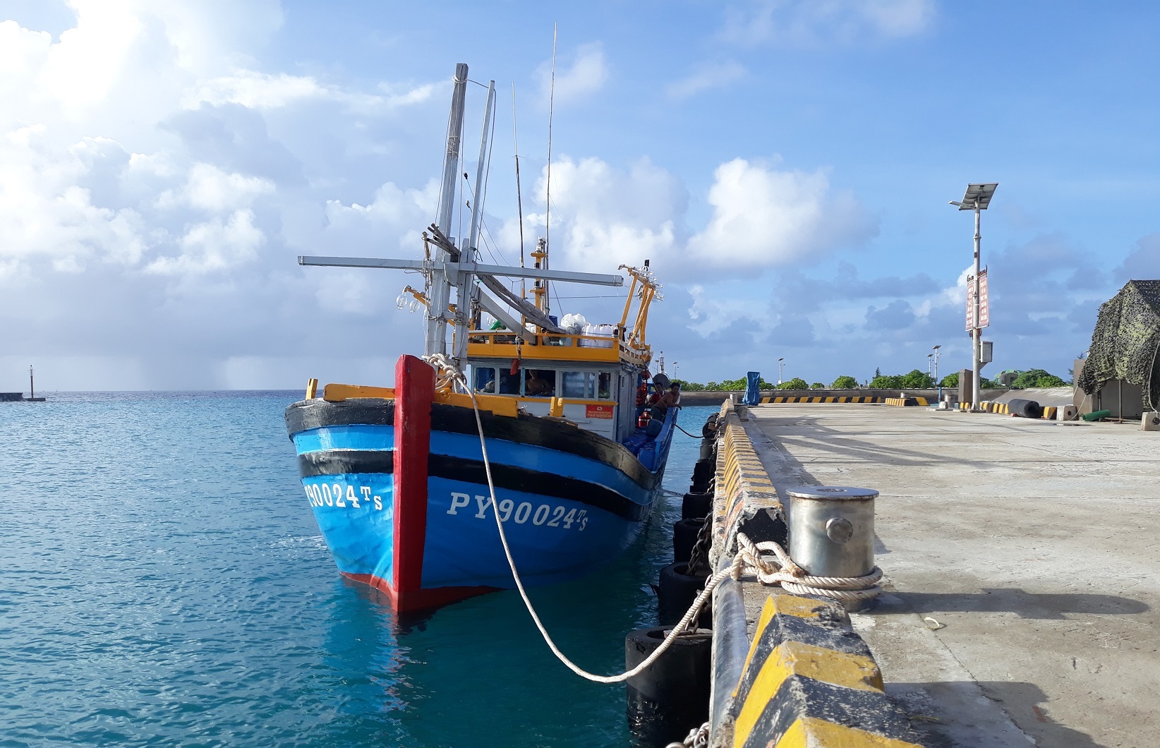 Tàu cá PY 90024 TS neo đậu tại cảng âu tàu đảo Sinh Tồn
