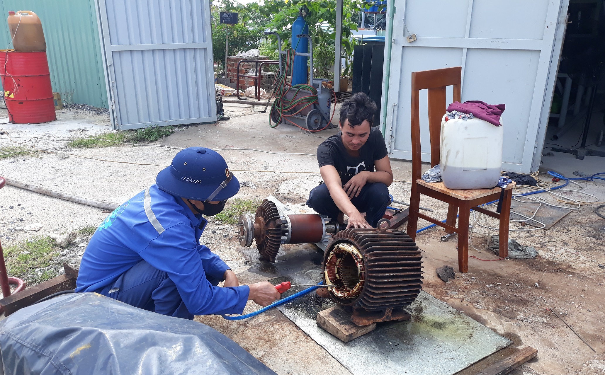 Trung tâm Dịch vụ hậu cần-kỹ thuật đảo Sinh Tồn sửa chữa máy phát điện cho tàu cá tỉnh Phú Yên