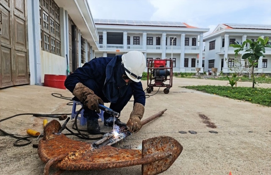 Trung tâm dịch vụ Hậu cần - Kỹ thuật đảo Trường Sa giúp tàu cá Ninh Thuận khắc phục sự cố gãy neo