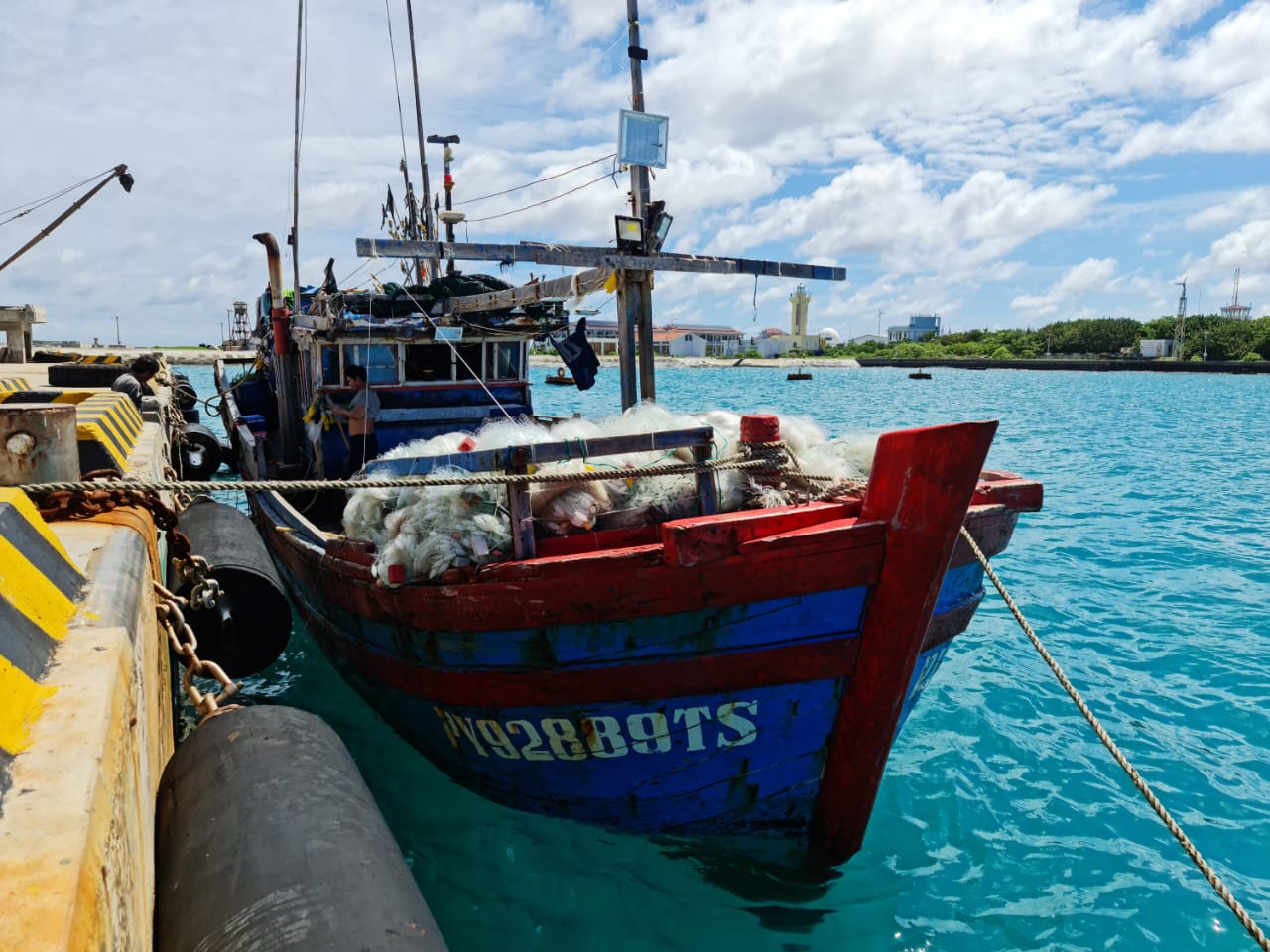 Tàu cá PY 92889 TS cập cảng âu tàu đảo Trường Sa