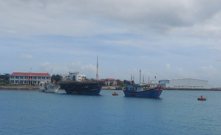 Tàu cá KH 97524 TS neo đậu tại âu tàu đảo Trường Sa