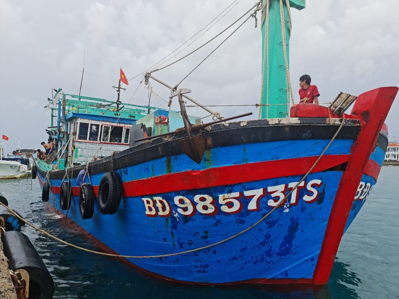 Tàu cá BĐ 98573 TS cập cảng Trung tâm Dịch vụ hậu cần - kỹ thuật đảo Trường Sa