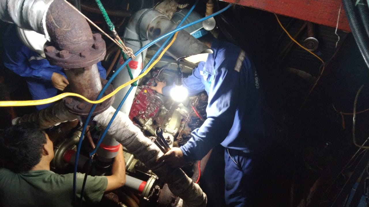 Sau hơn 1 ngày làm việc tích cực, nhân viên kỹ thuật của Trung tâm Dịch vụ hậu cần-kỹ thuật đảo Trường Sa đã tiến hành sửa chữa, khắc phục thành công sự cố cho tàu cá.