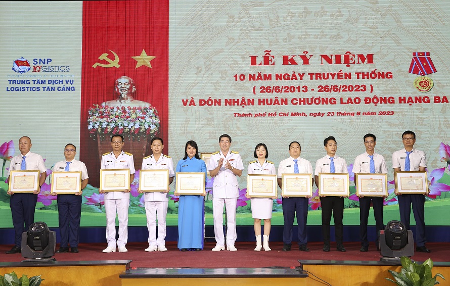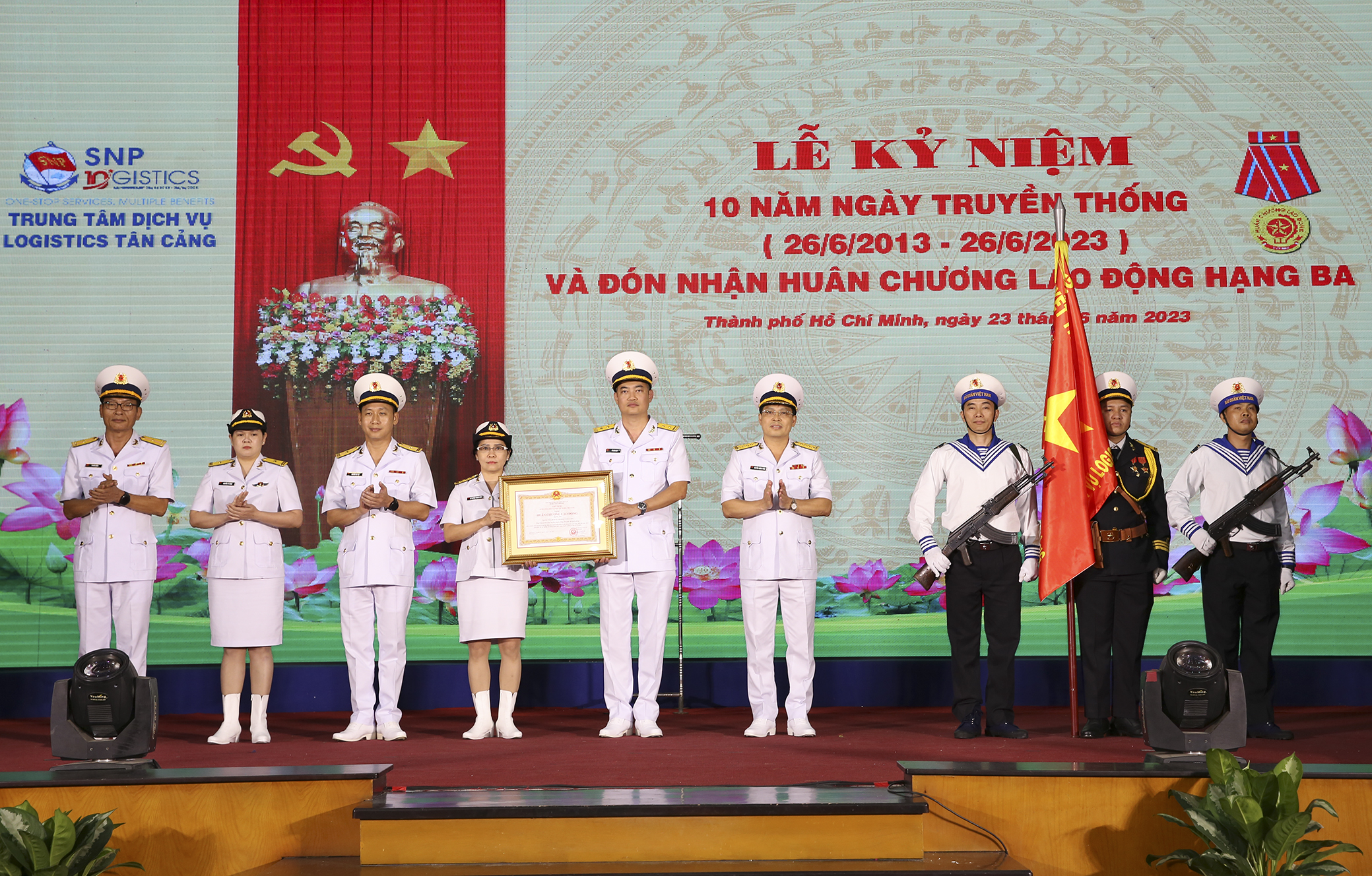 Tối 23/6, tại TP. Hồ Chí Minh, Trung tâm Dịch vụ logistics Tân cảng thuộc Tổng công ty Tân cảng Sài Gòn (TCSG) tổ chức Lễ kỷ niệm 10 năm ngày truyền thống (26/6/2013 - 26/6/2023) và đón nhận Huân chương Lao động hạng Ba.