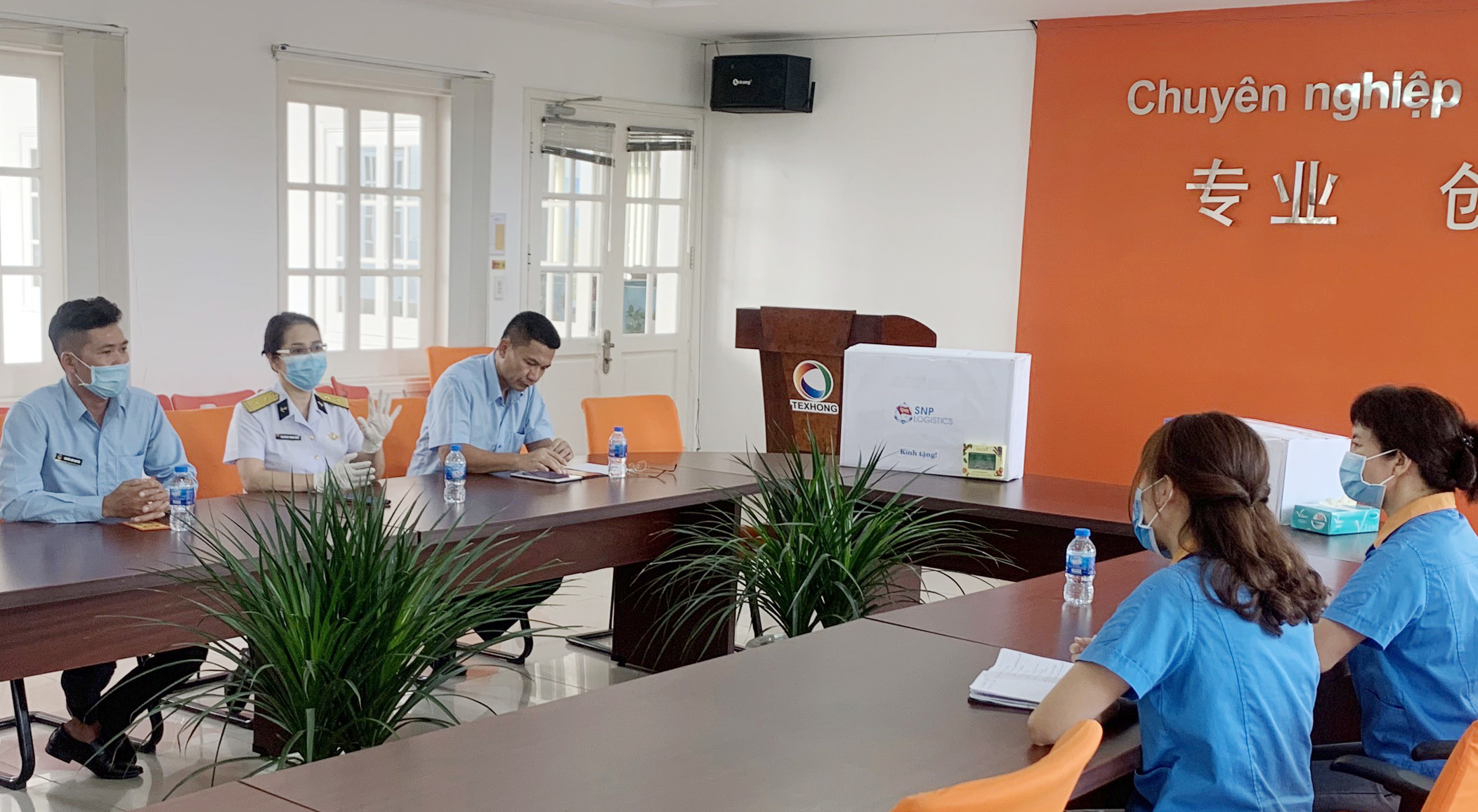 Ngày 17 và 18-2, đoàn công tác của Trung tâm Dịch vụ Logistics Tân cảng, Tổng công ty Tân cảng Sài Gòn đã đến nắm bắt tình hình, chia sẻ, hỗ trợ một số trang thiết bị y tế phòng, chống dịch bệnh viêm đường hô hấp cấp do chủng mới của vi rus Corona (COVID-19) gây ra cho một số tập đoàn, tổng công ty như Brotex, CC Grass, Billion, Formosa, Texhong, Chánh Dương, Far Eastern, Wanek… Đây là các đối tác, khách hàng truyền thống, gắn bó nhiều năm với Tổng công ty Tân cảng Sài Gòn và Trung tâm.