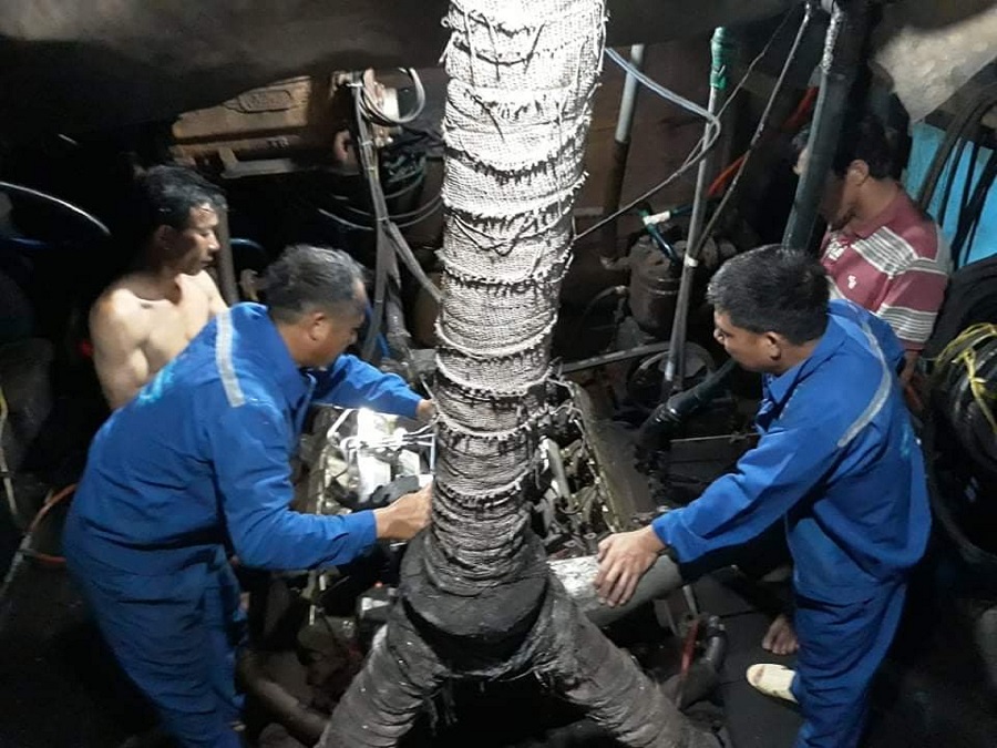 Với tinh thần tất cả vì ngư dân, đến 19 giờ 30 phút, cán bộ, nhân viên kỹ thuật Âu tàu Trường Sa đã khắc phục thành công sự cố bơm cao áp máy chính tàu cá QNg 96509 TS.