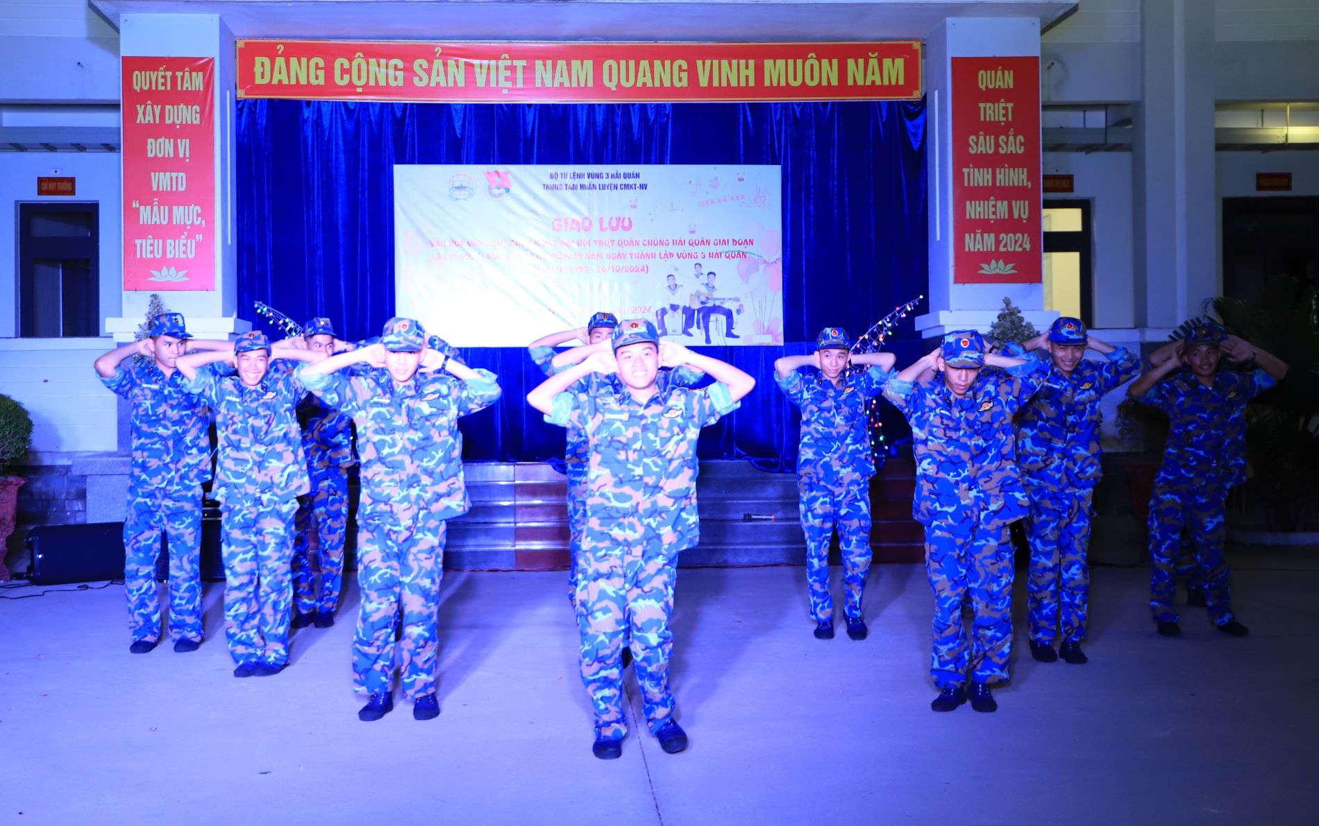 Các đại biểu cùng cán bộ, chiến sĩ được thưởng thức những tiết mục văn nghệ ca ngợi Đảng quang vinh, Bác Hồ kính yêu, tình yêu quê hương đất nước, Bộ đội Cụ Hồ - người chiến sĩ Hải quân; các vũ điệu trong sinh hoạt tập thể, các điệu nhảy sôi động do đoàn viên thanh niên của Vùng và đơn vị kết nghĩa thể hiện.