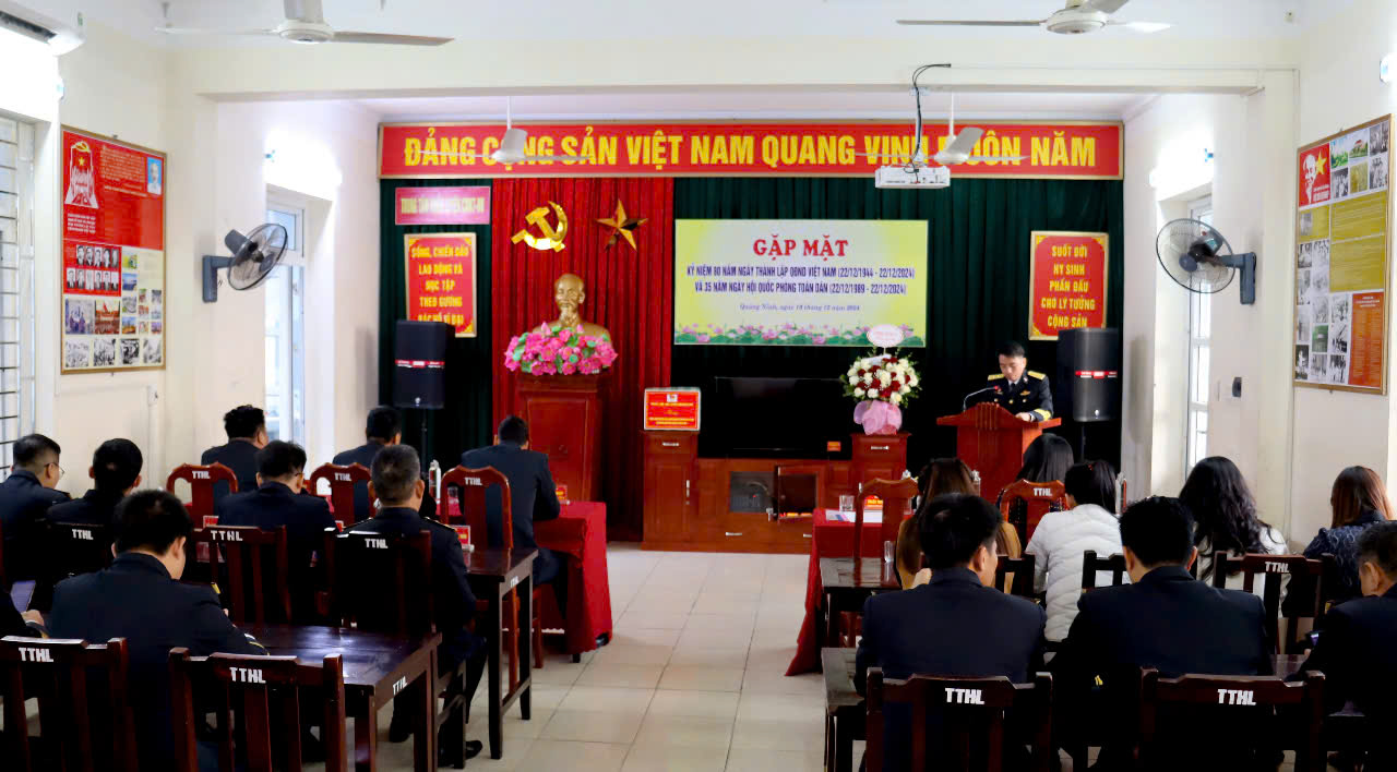 Chiều 19/12, tại TP. Hạ Long, tỉnh Quảng Ninh, Trung tâm huấn luyện Vùng 1 tổ chức gặp mặt kỷ niệm 80 năm Ngày thành lập Quân đội nhân dân Việt Nam (22/12/1944 – 22/12/2024), 35 năm Ngày hội Quốc phòng toàn dân (22/12/1989 - 22/12/2024). Trung tá Quách Minh Phú, Bí thư Đảng ủy, Chính trị viên Trung tâm chủ trì.
