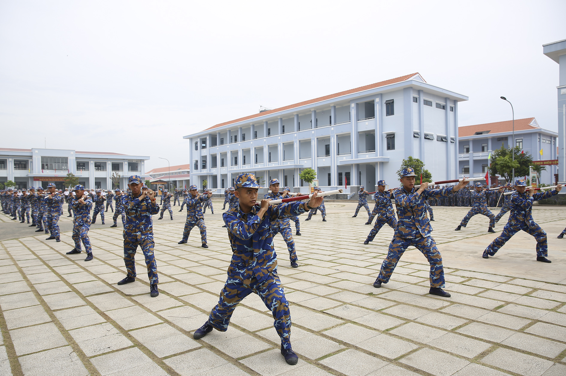 Học viên đồng diễn 12 động tác trường côn