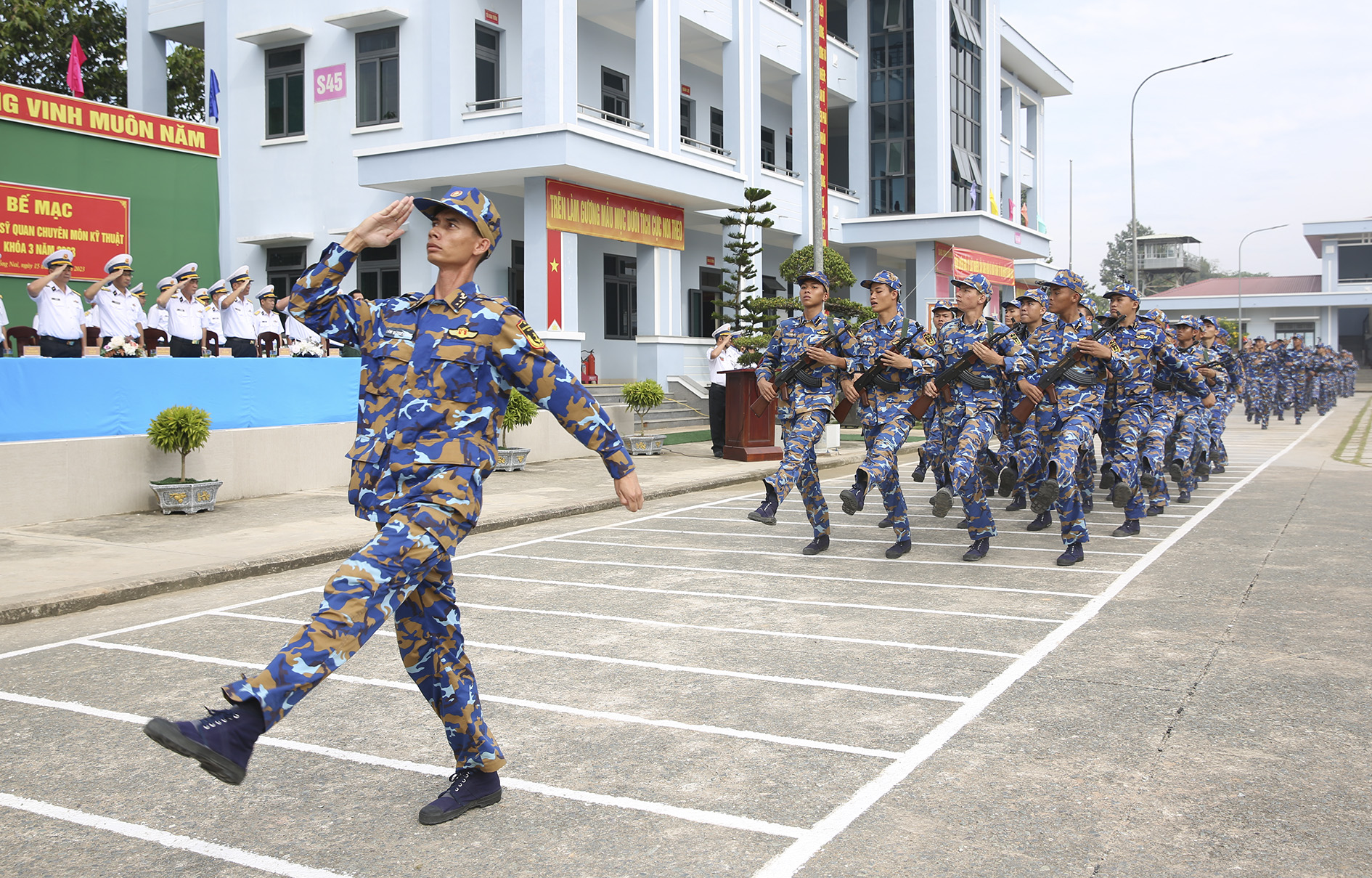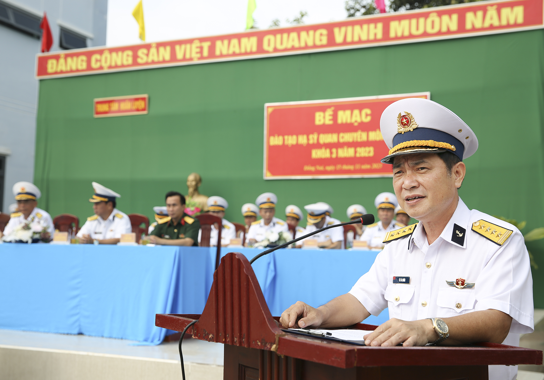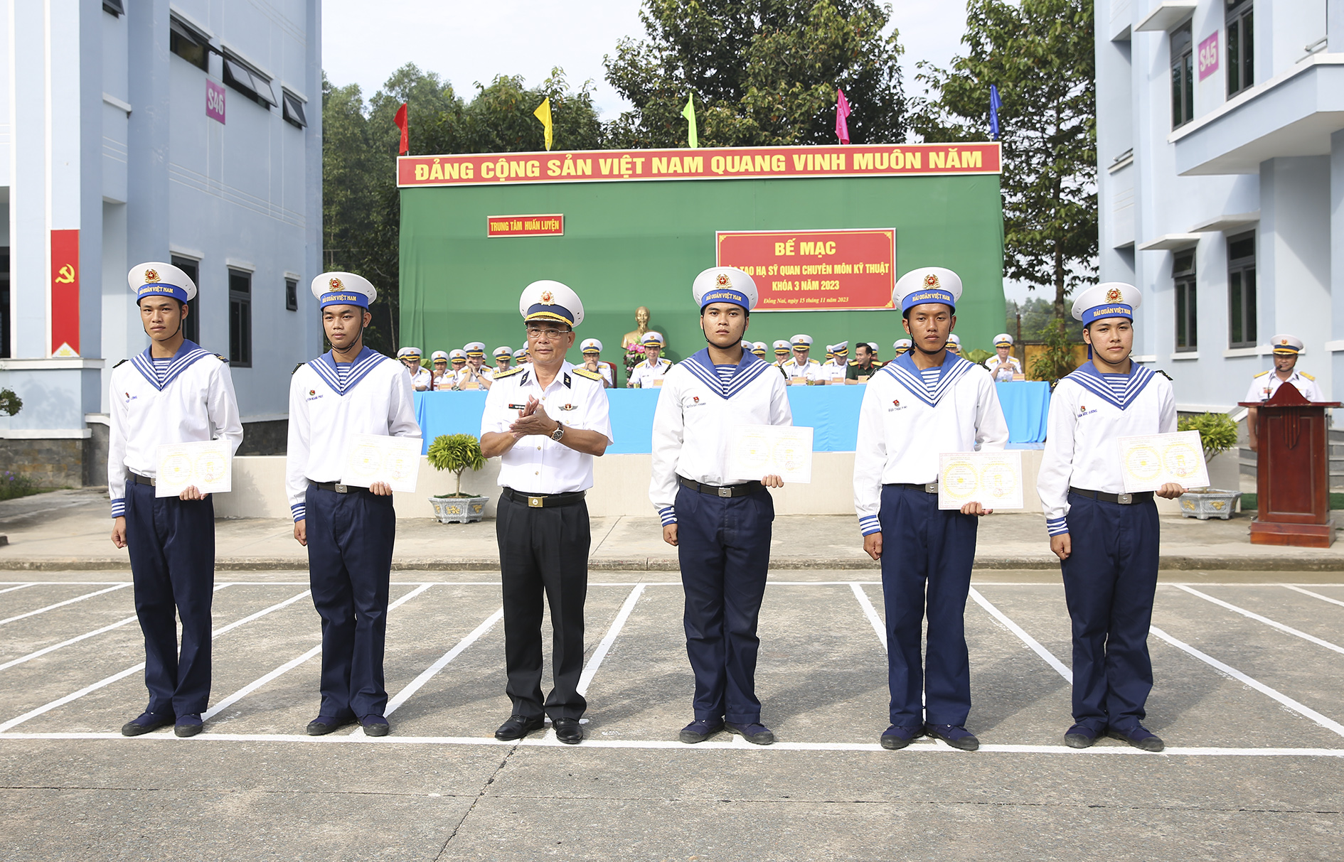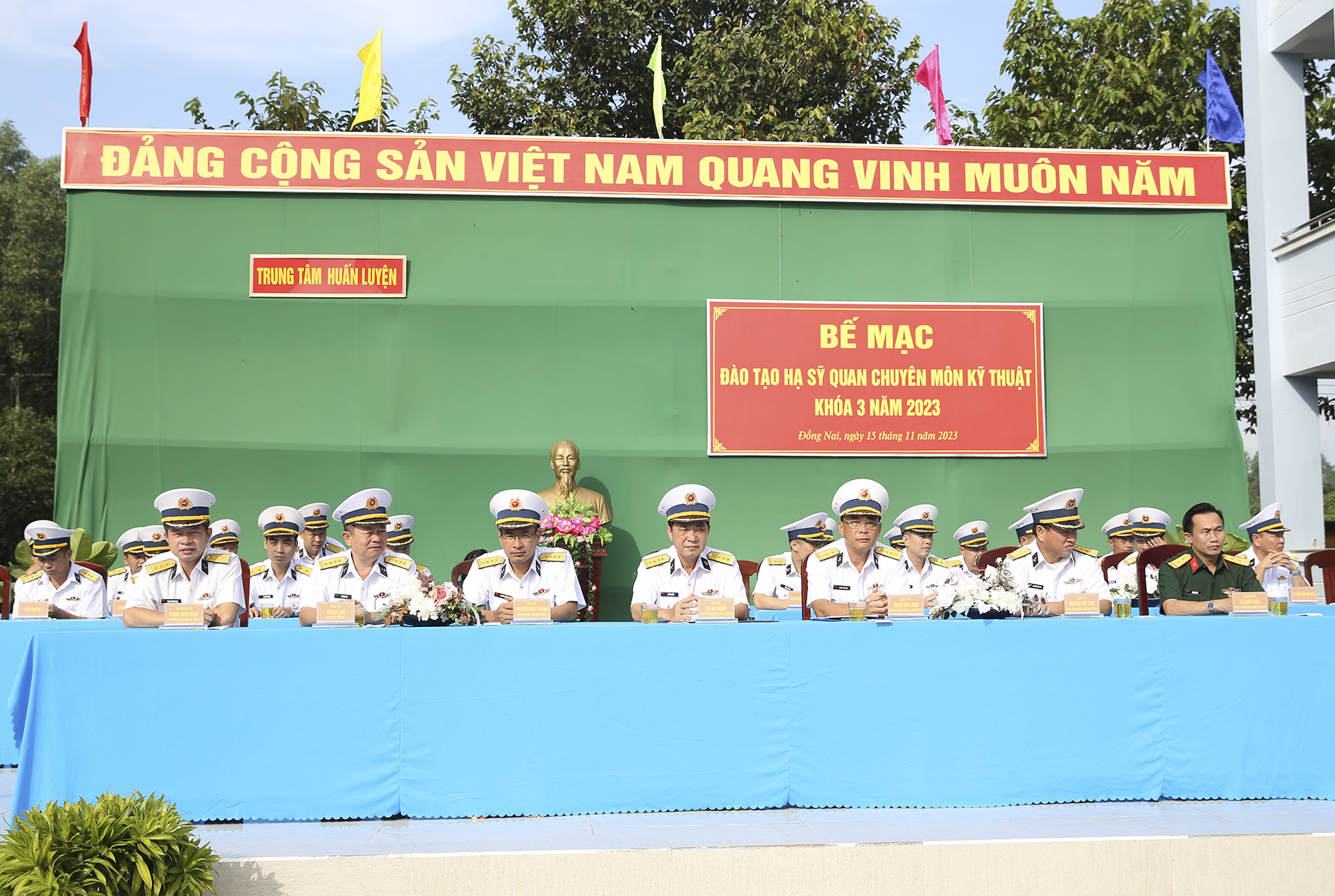 Sáng 15/11, tại Đồng Nai, Trung tâm Huấn luyện Vùng 2 Hải quân tổ chức bế giảng đào tạo hạ sĩ quan chuyên môn kỹ thuật Khóa 3 năm 2023. Đại tá Lê Bá Quân, Phó Tư lệnh, Tham mưu trưởng Vùng 2 dự, chỉ đạo.