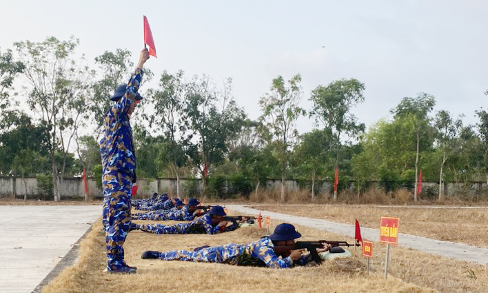Ngày 1/4 tại trường bắn huyện Nhơn Trạch, tỉnh Đồng Nai, Tiểu đoàn 1, Trung tâm Huấn luyện Vùng 2 Hải quân tổ chức bắn tập lần 1 súng tiểu liên AK cho chiến sĩ mới (CSM) nhập ngũ năm 2024.