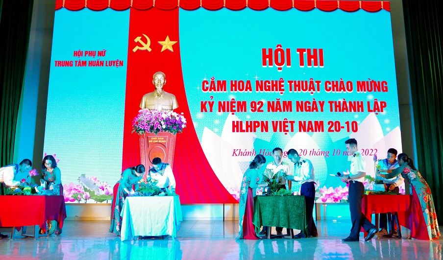 Sáng 20/10, tại TP. Cam Ranh, tỉnh Khánh Hòa, Trung tâm Huấn luyện Vùng 4 Hải quân tổ chức Hội thi cắm hoa nghệ thuật chào mừng kỷ niệm 92 năm Ngày thành lập Hội Liên hiệp phụ nữ Việt Nam.