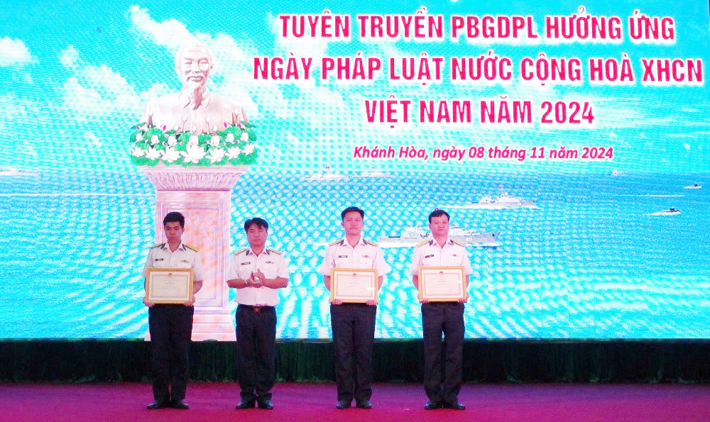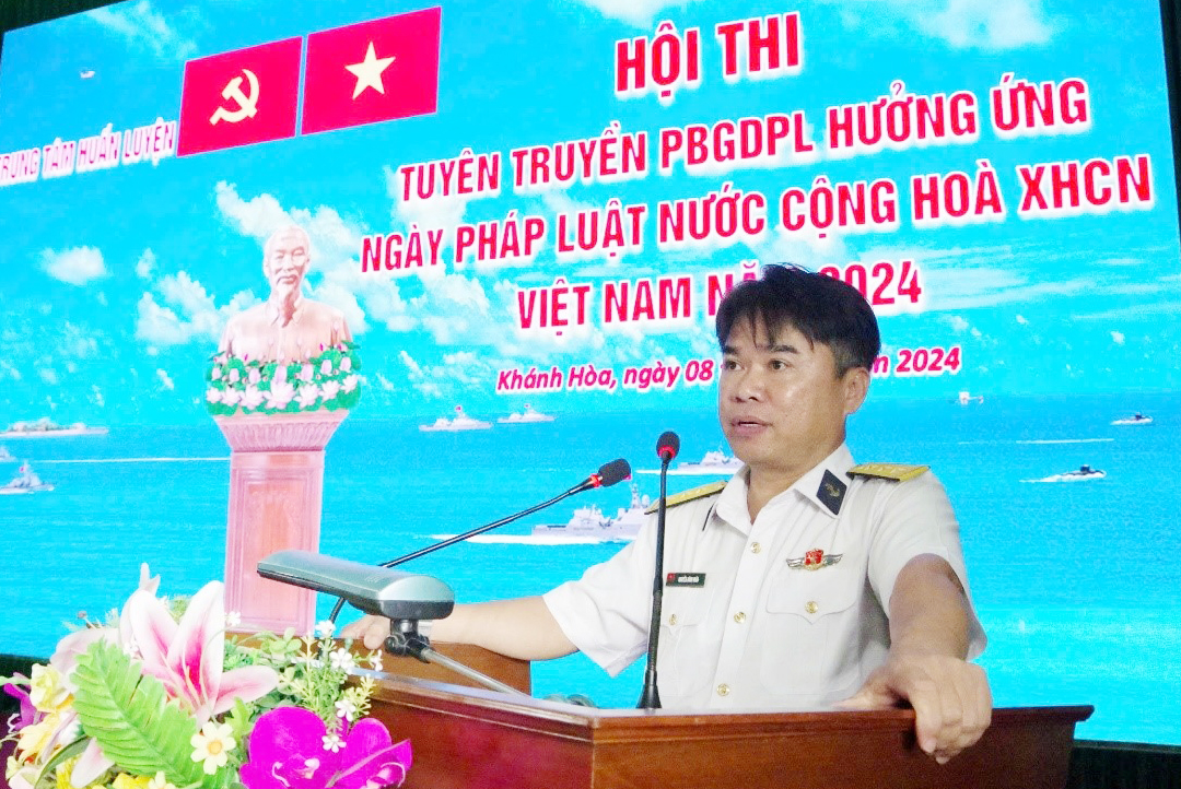 Tối 8/11, tại thành phố Cam Ranh, tỉnh Khánh Hoà, Trung tâm Huấn luyện Vùng 4 Hải quân tổ chức Hội thi tuyên truyền, phổ biến, giáo dục pháp luật nhằm hưởng ứng Ngày pháp luật nước Cộng hòa xã hội chủ nghĩa Việt Nam năm 2024. Thượng tá Nguyễn Đình Mão, Phó Chính ủy Trung tâm chủ trì.