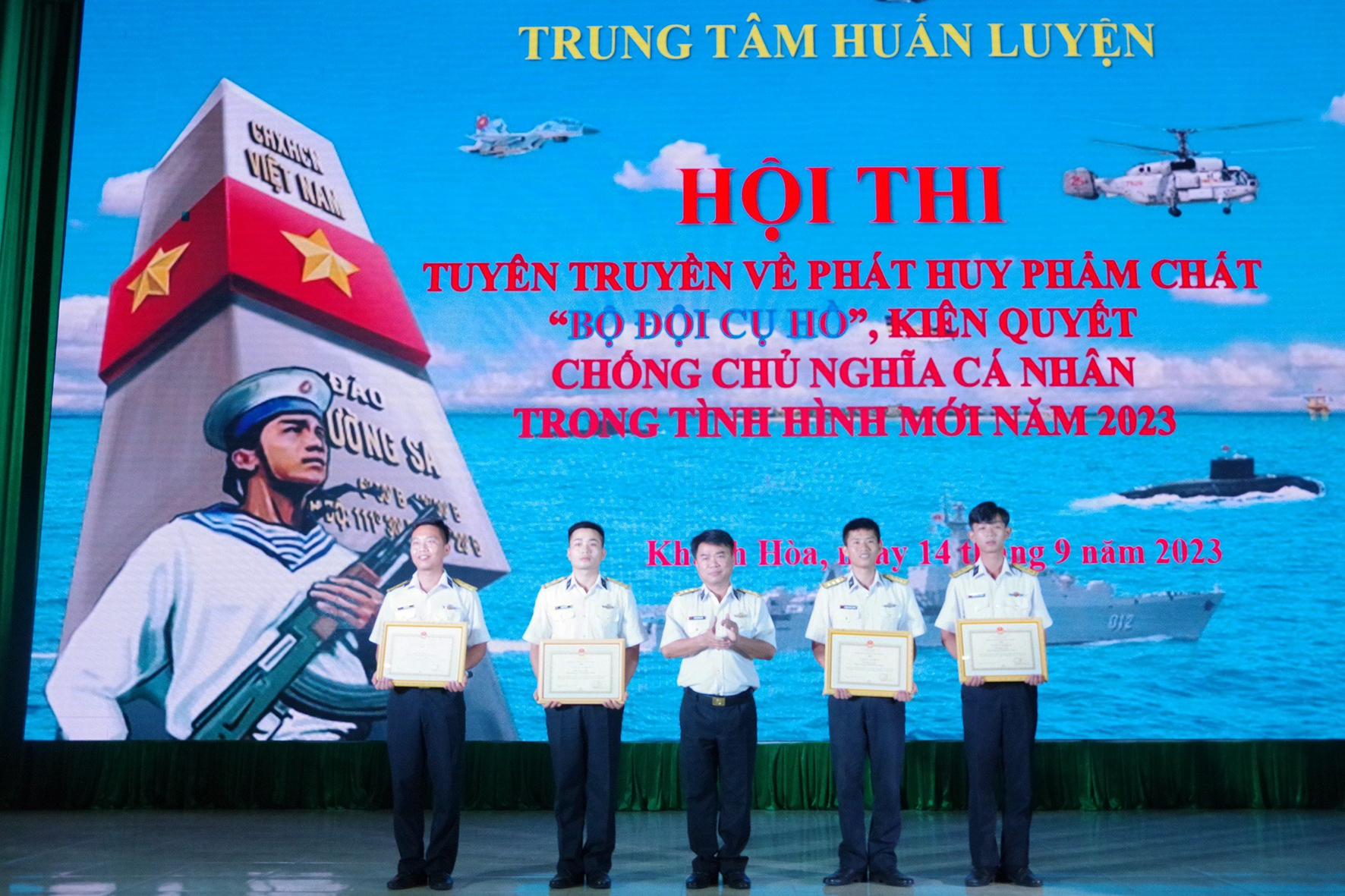 Tối 14/9, tại TP. Cam Ranh, tỉnh Khánh Hòa, Trung tâm Huấn luyện Vùng 4 tổ chức Hội thi tuyên truyền về phát huy phẩm chất “Bộ đội Cụ Hồ”, kiên quyết chống chủ nghĩa cá nhân trong tình hình mới. Thượng tá Nguyễn Đình Mão, Phó Chính ủy Trung tâm dự và chỉ đạo.
