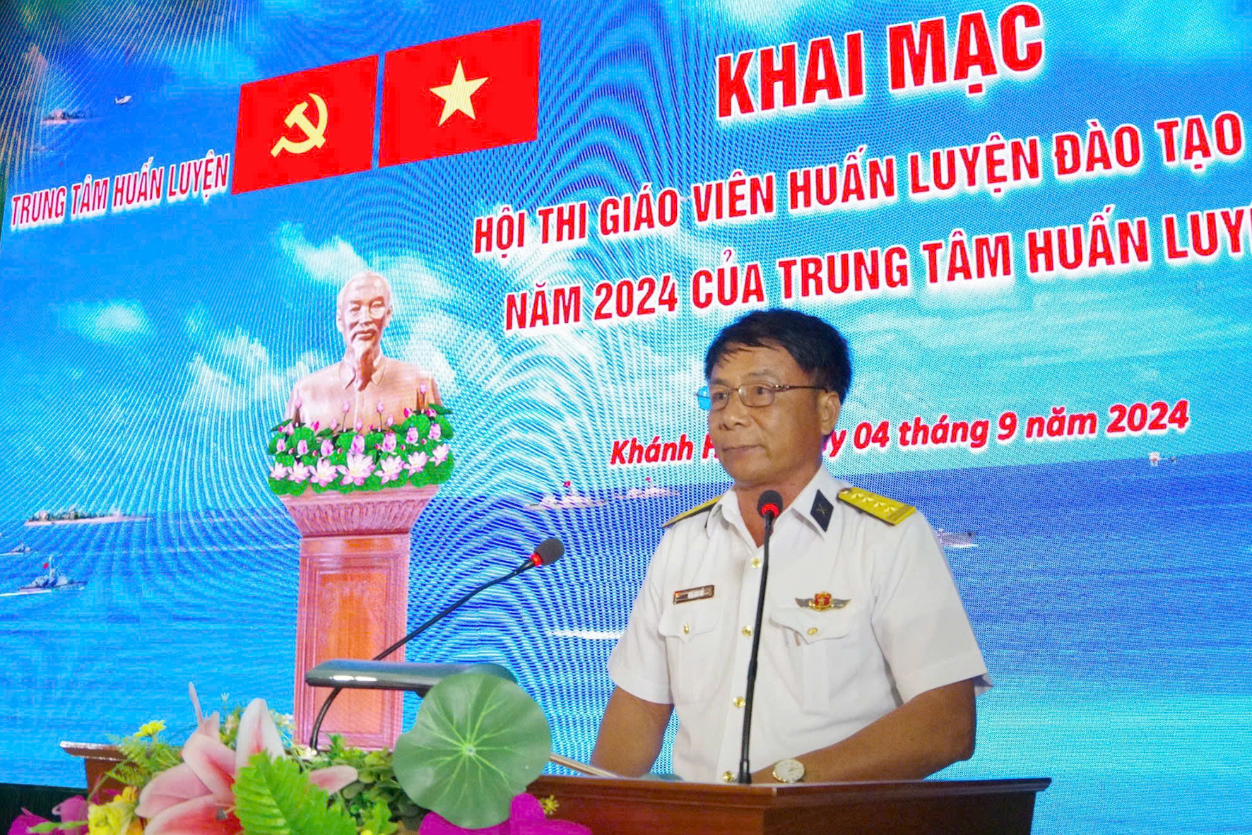 Sáng 4/9, tại TP. Cam Ranh, tỉnh Khánh Hòa, Trung tâm huấn luyện Vùng 4 Hải quân khai mạc hội thi giáo viên huấn luyện đào tạo giỏi năm 2024. Đại tá Ngô Duy Đỗ, Phó Tham mưu trưởng Vùng 4 dự và chỉ đạo.