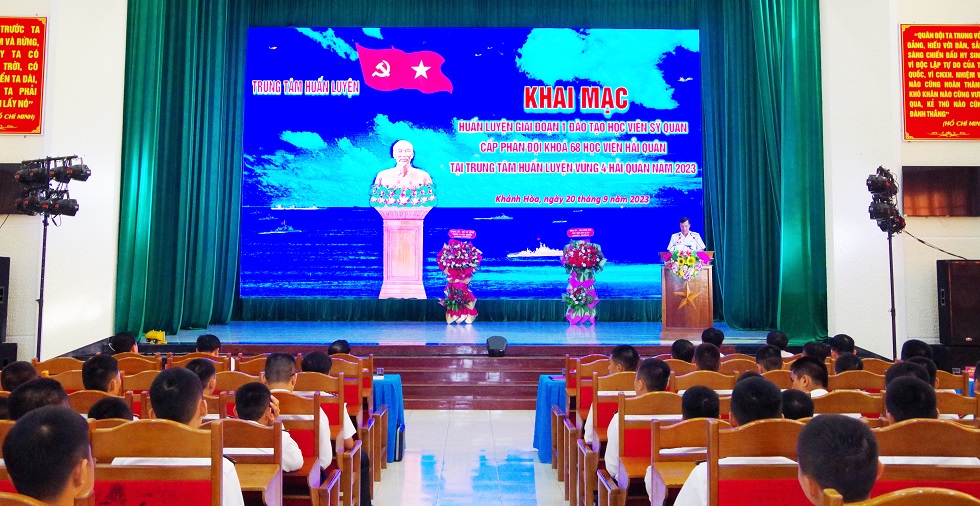 Chiều 20/9, tại TP. Cam Ranh, tỉnh Khánh Hòa, Trung tâm Huấn luyện Vùng 4 Hải quân tổ chức lễ khai mạc huấn luyện giai đoạn 1 đào tạo học viên sĩ quan Khóa 68 của Học viện Hải quân. Đại tá Nguyễn Đức Khởi, Phó Tư lệnh Vùng 4 dự, chỉ đạo.