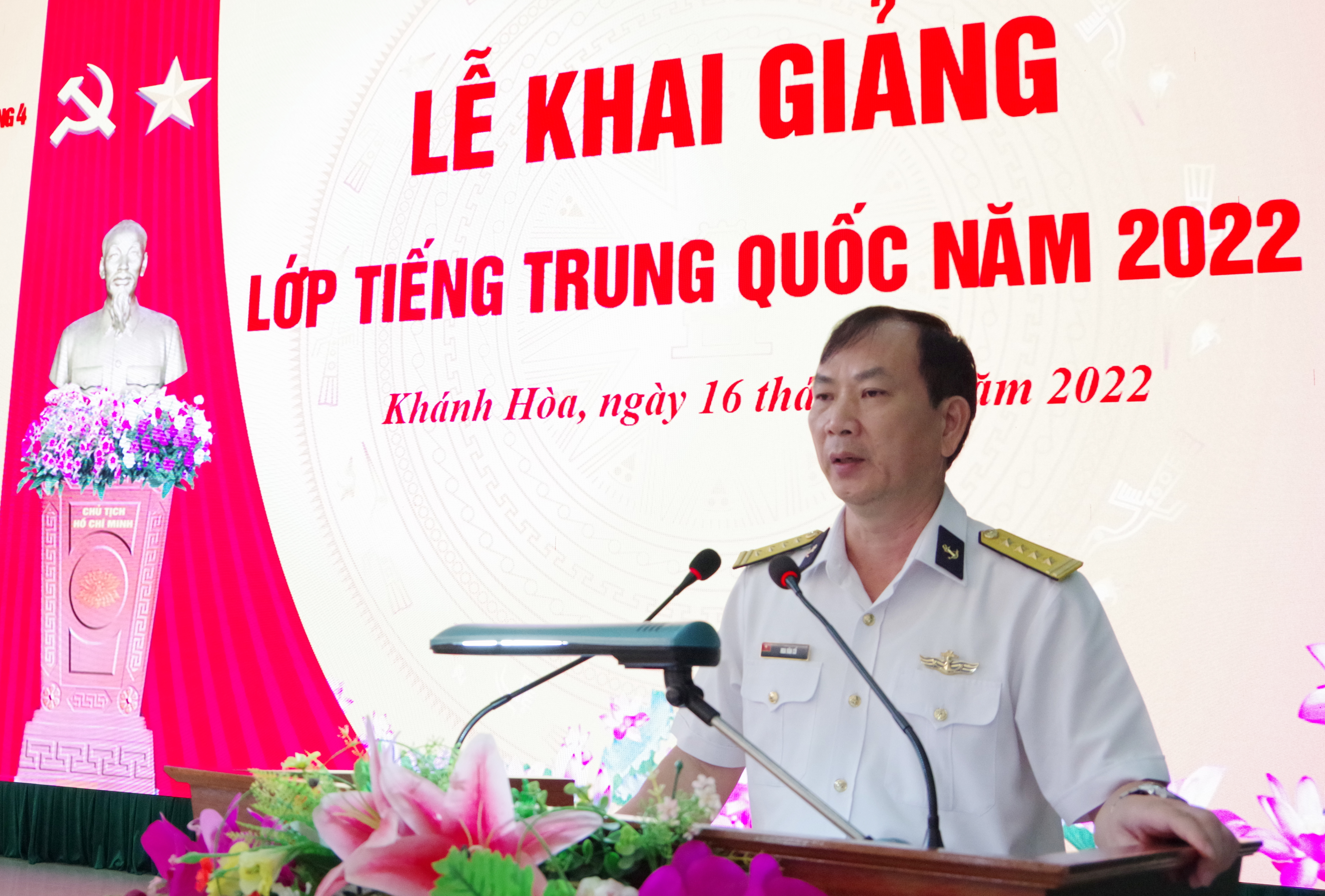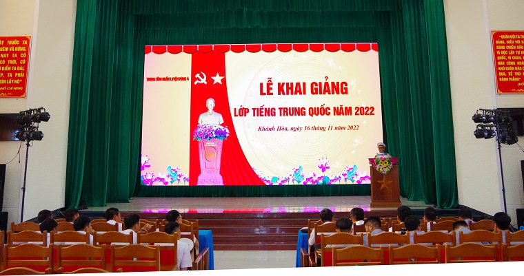 Sáng 16/11, tại TP. Cam Ranh, tỉnh Khánh Hòa, Trung tâm Huấn luyện Vùng 4 Hải quân tổ chức khai giảng lớp tiếng Trung Quốc. Đại tá Hoa Văn Cố, Chính ủy Trung tâm dự và chỉ đạo.