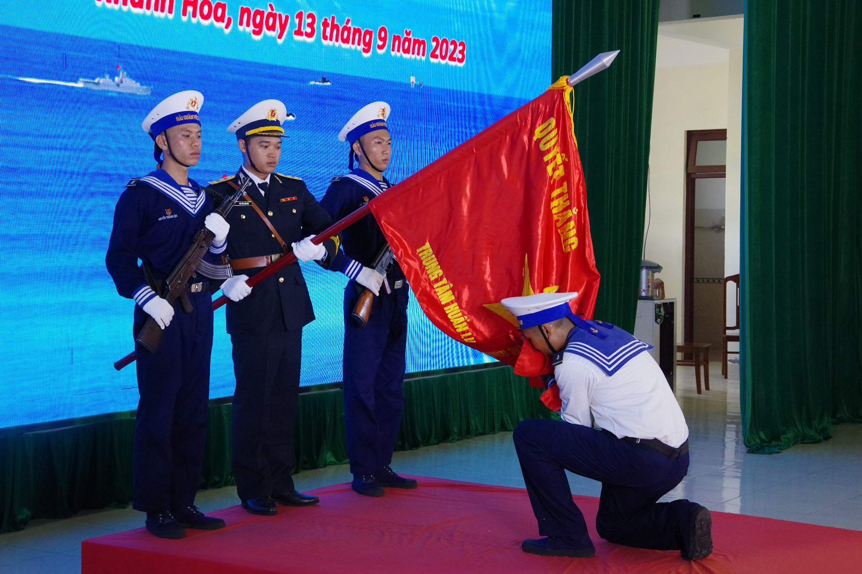 Chiều 13/9, tại TP. Cam Ranh, tỉnh Khánh Hòa, Trung tâm Huấn luyện Vùng 4 Hải quân tổ chức lễ tốt nghiệp cho 256 học viên đào tạo hạ sĩ quan-chỉ huy, nhân viên chuyên môn kỹ thuật Khóa 27 chuyên ngành tiểu đội trưởng bộ binh và khẩu đội trưởng súng AGS-17.
